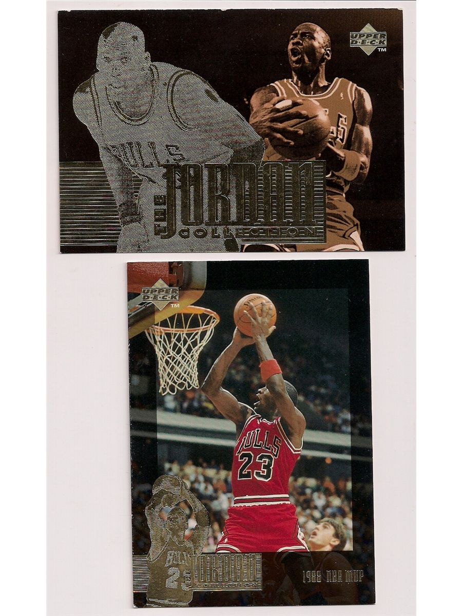 Lot of (2) 1996-97 Upper Deck Michael Jordan Collection oversized Michael Jordan Cards. This lot includes cards JC16 & JC17. Both cards measure approx. 3x5 inches in size. This lot is in Excellent Condition.