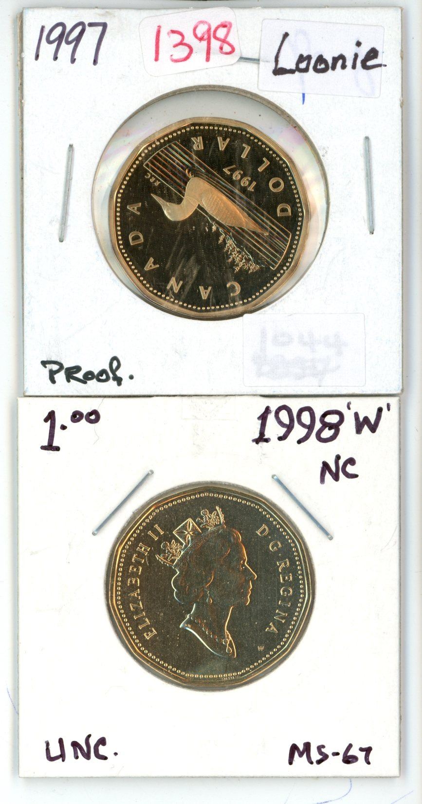 Lot of 2 (1997 proof and 1998'W' UNC. MS-67) canadian loonies
