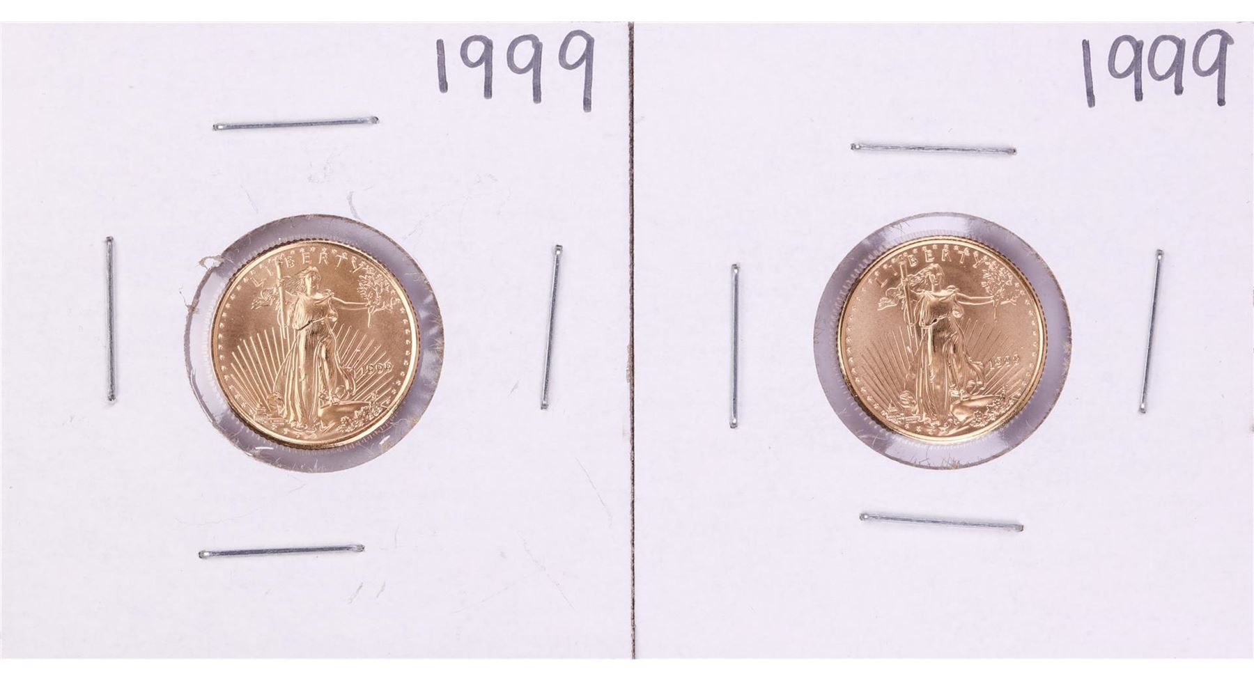 One Lot of (2) 1999 $5 American Gold Eagle Coins.