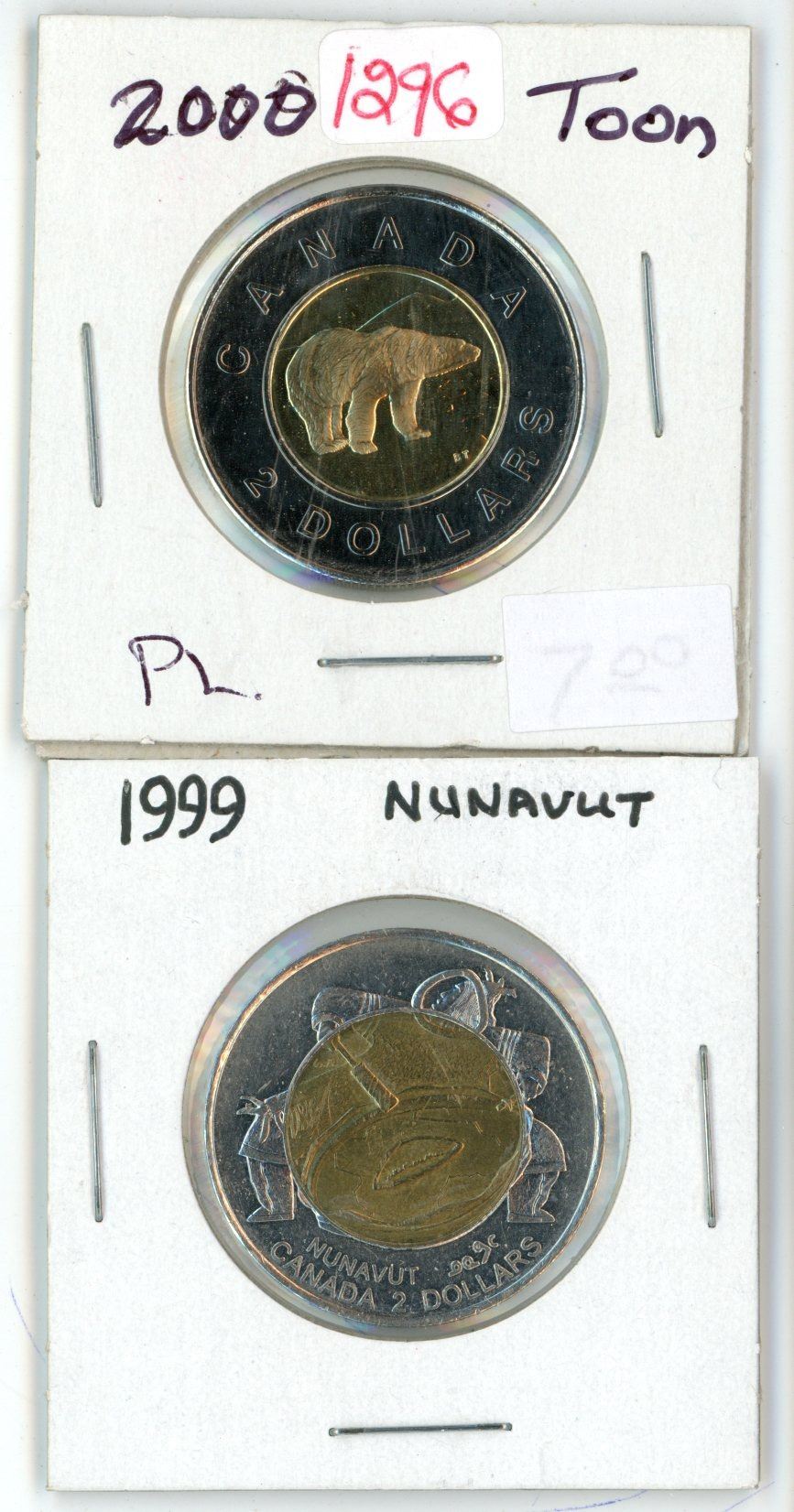 Lot of 2 ( 1999 Nunavut and 2000 Proof-like) Canadian toonies