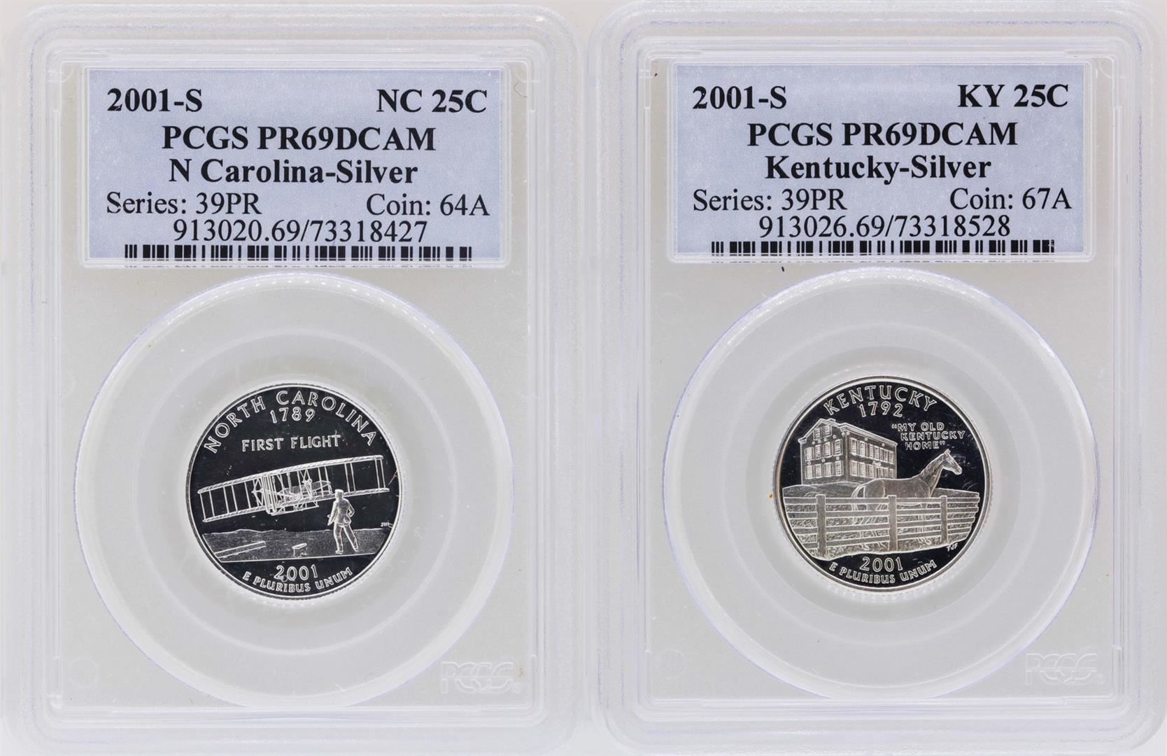 One Lot of (2) 2001-S State Quarter Silver Coins PCGS PR69DCAM. PCGS Graded.