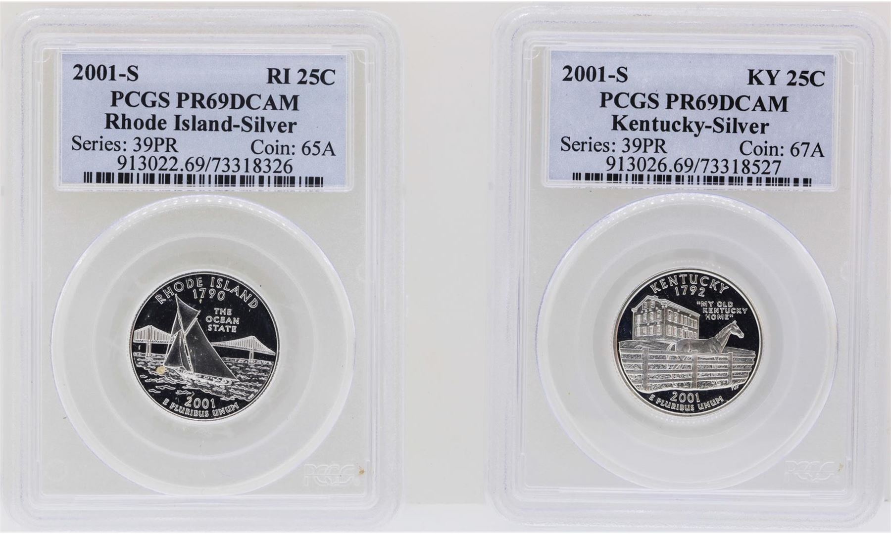 One Lot of (2) 2001-S State Quarter Silver Coins PCGS PR69DCAM. PCGS Graded.