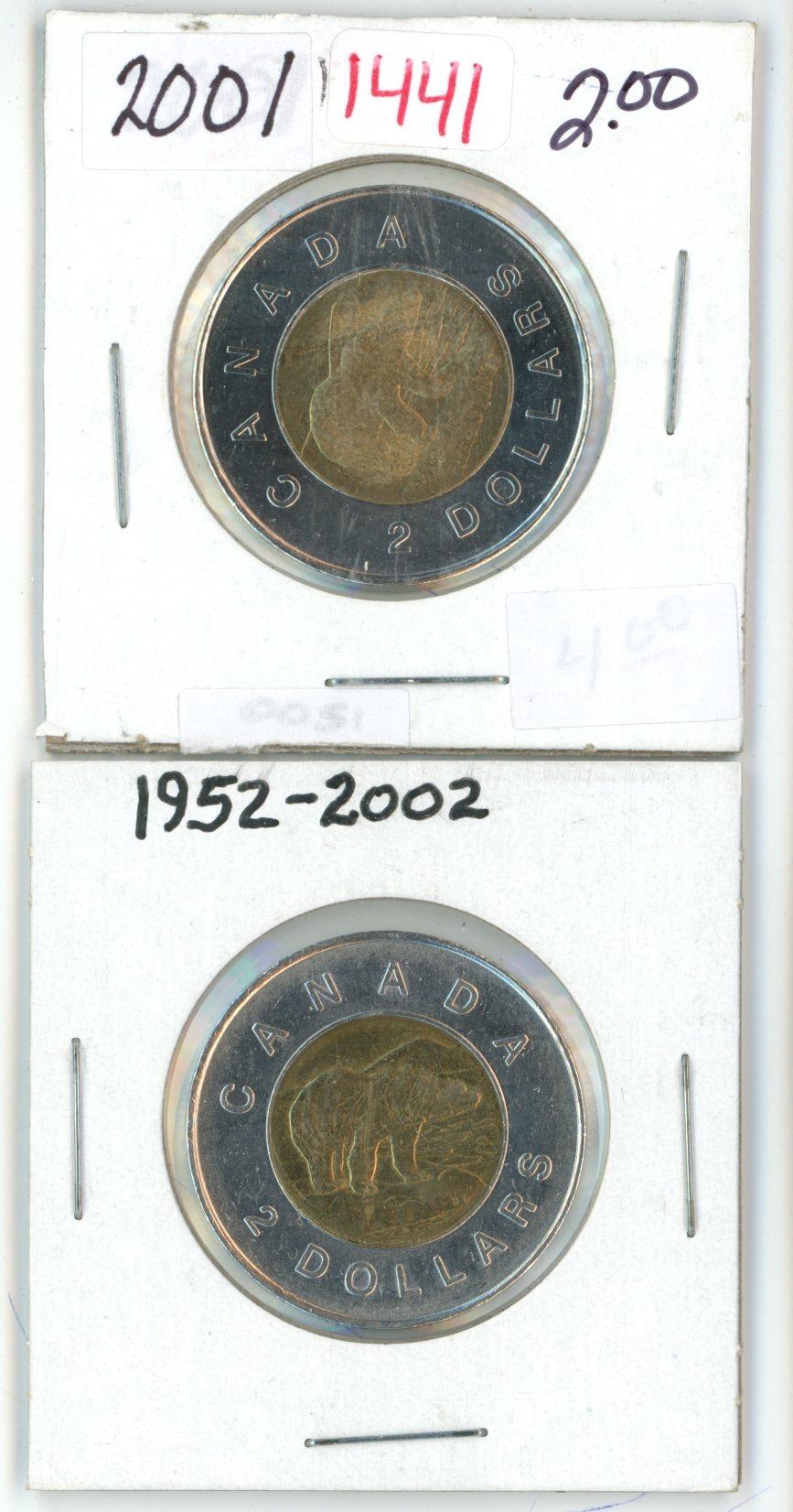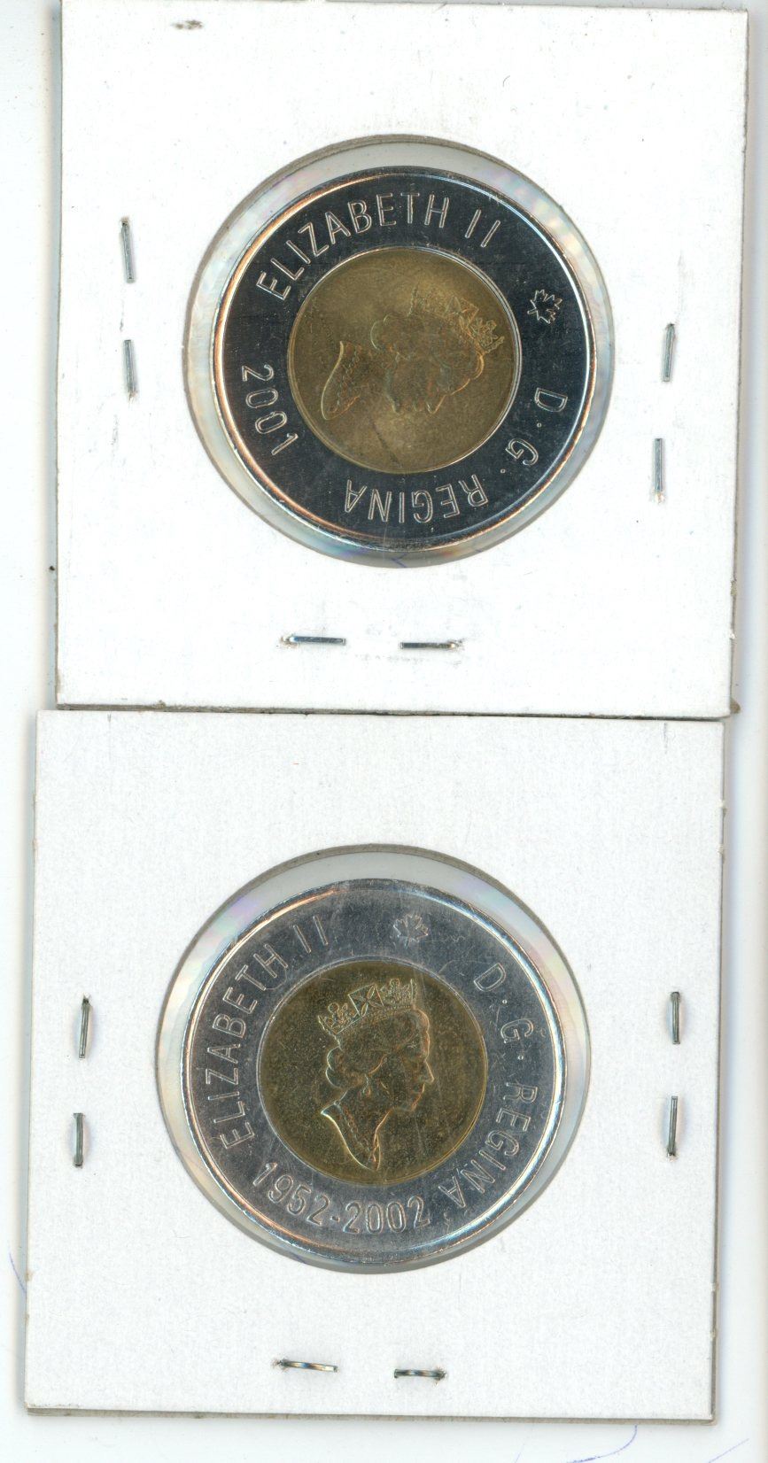 Lot of 2 ( 2001 and 1952-2002) canadian toonies
