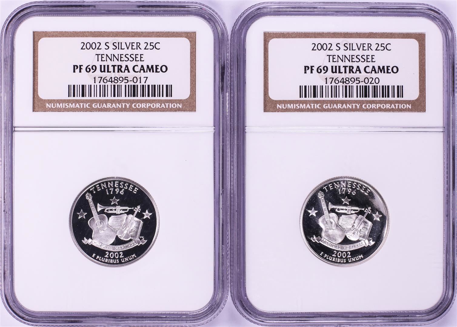 Lot of (2) 2002-S Proof Silver Tennessee State Quarter Coins NGC PF69 Ultra Cameo