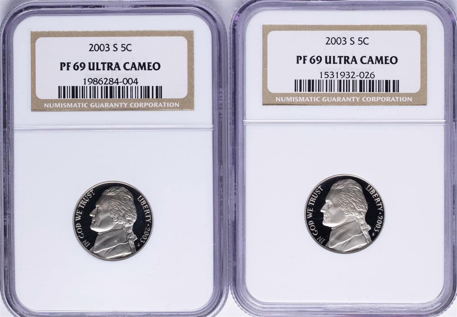 Lot of (2) 2003-S Jefferson Nickel Proof Coins NGC PF69 Ultra Cameo