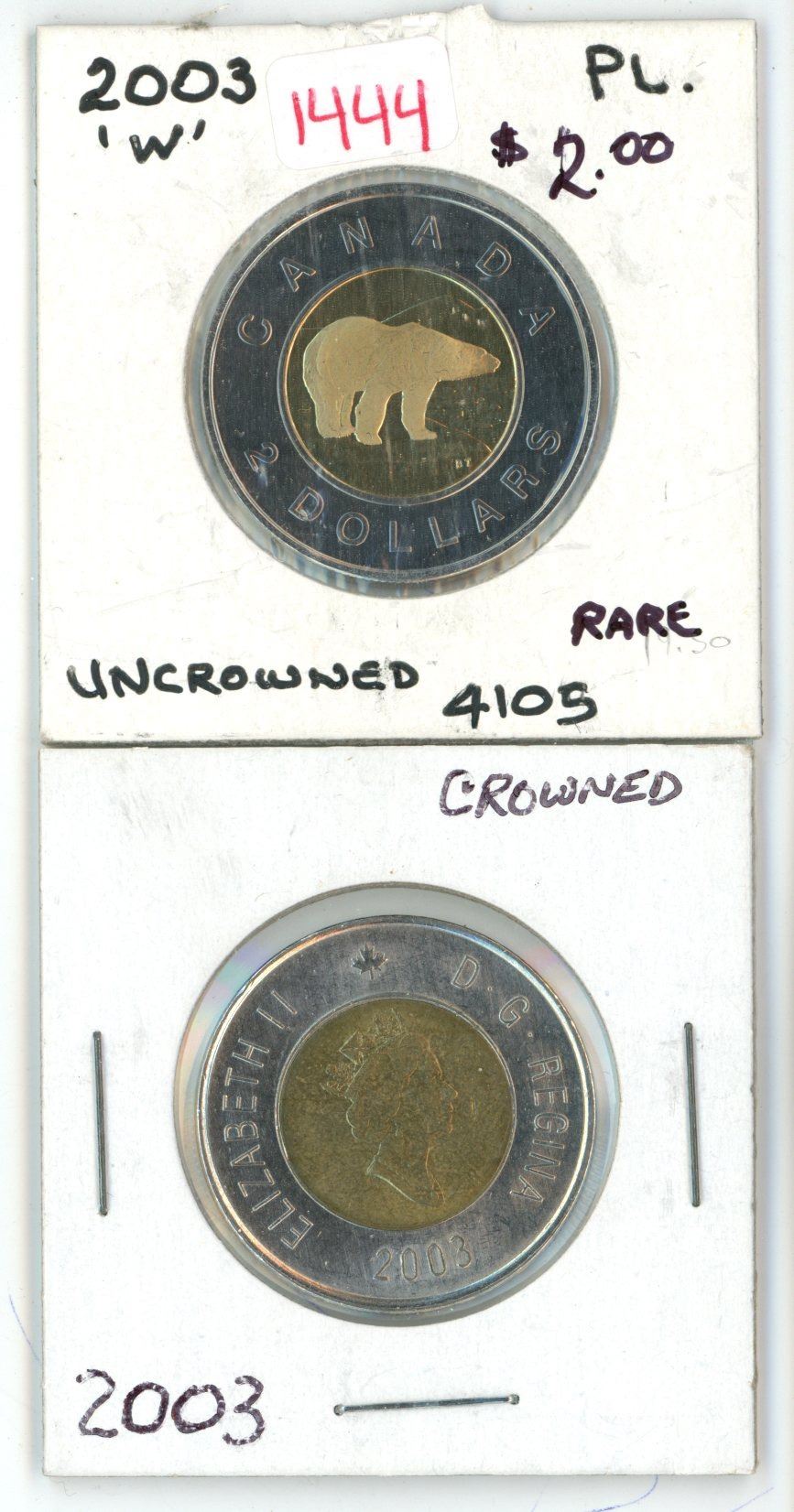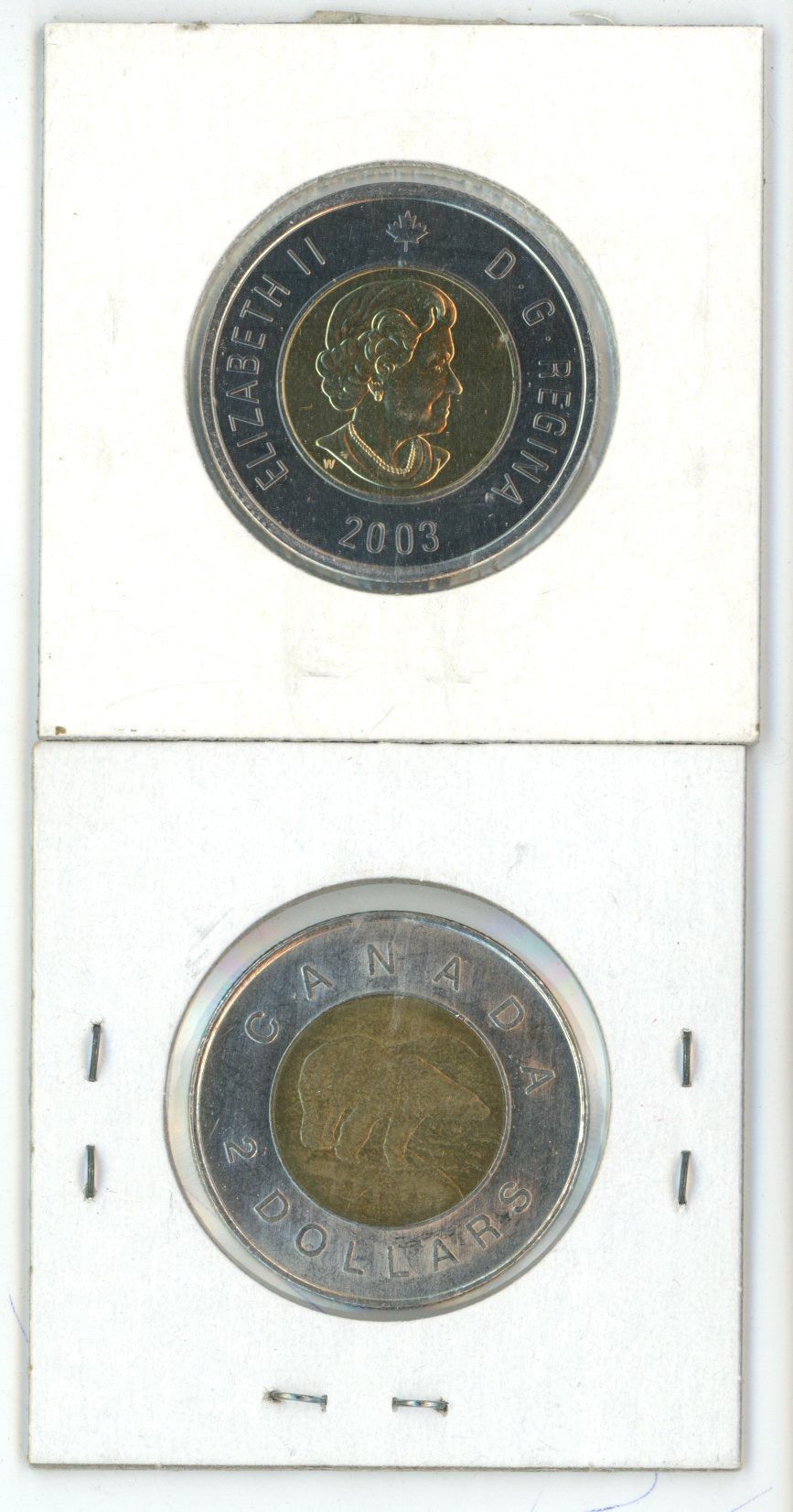 Lot of 2 ( 2003 crowned and 2003 uncrowned rare) canadian toonies