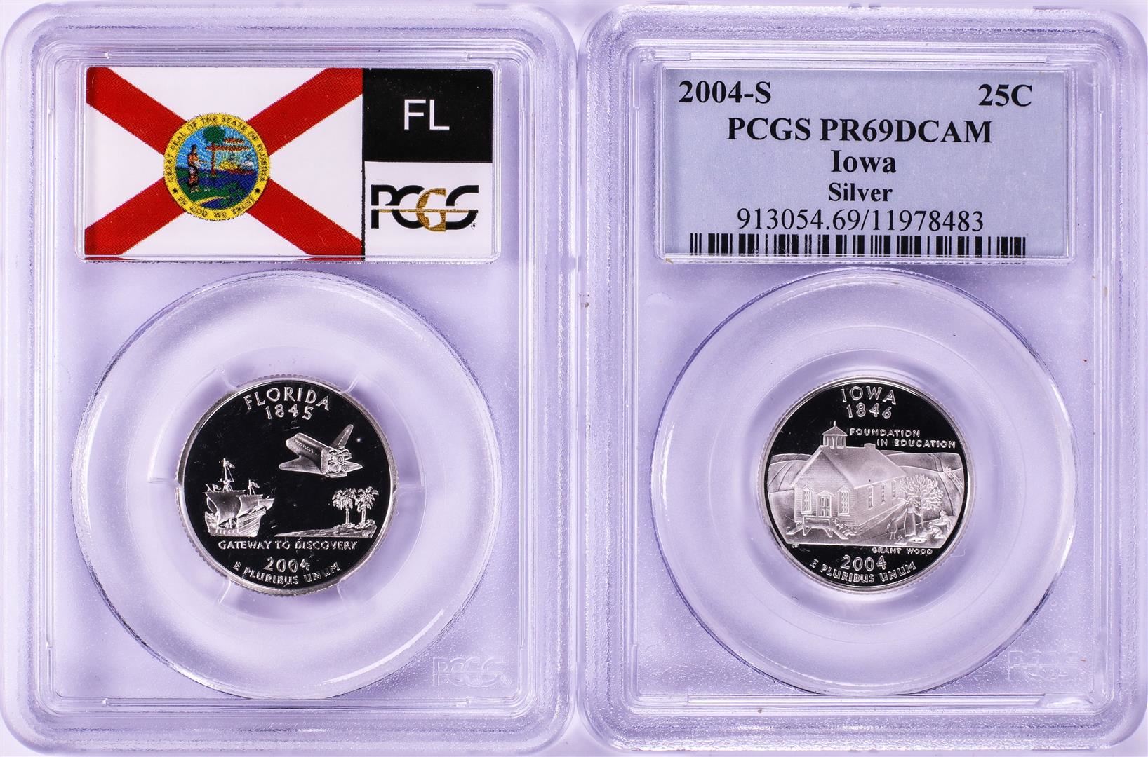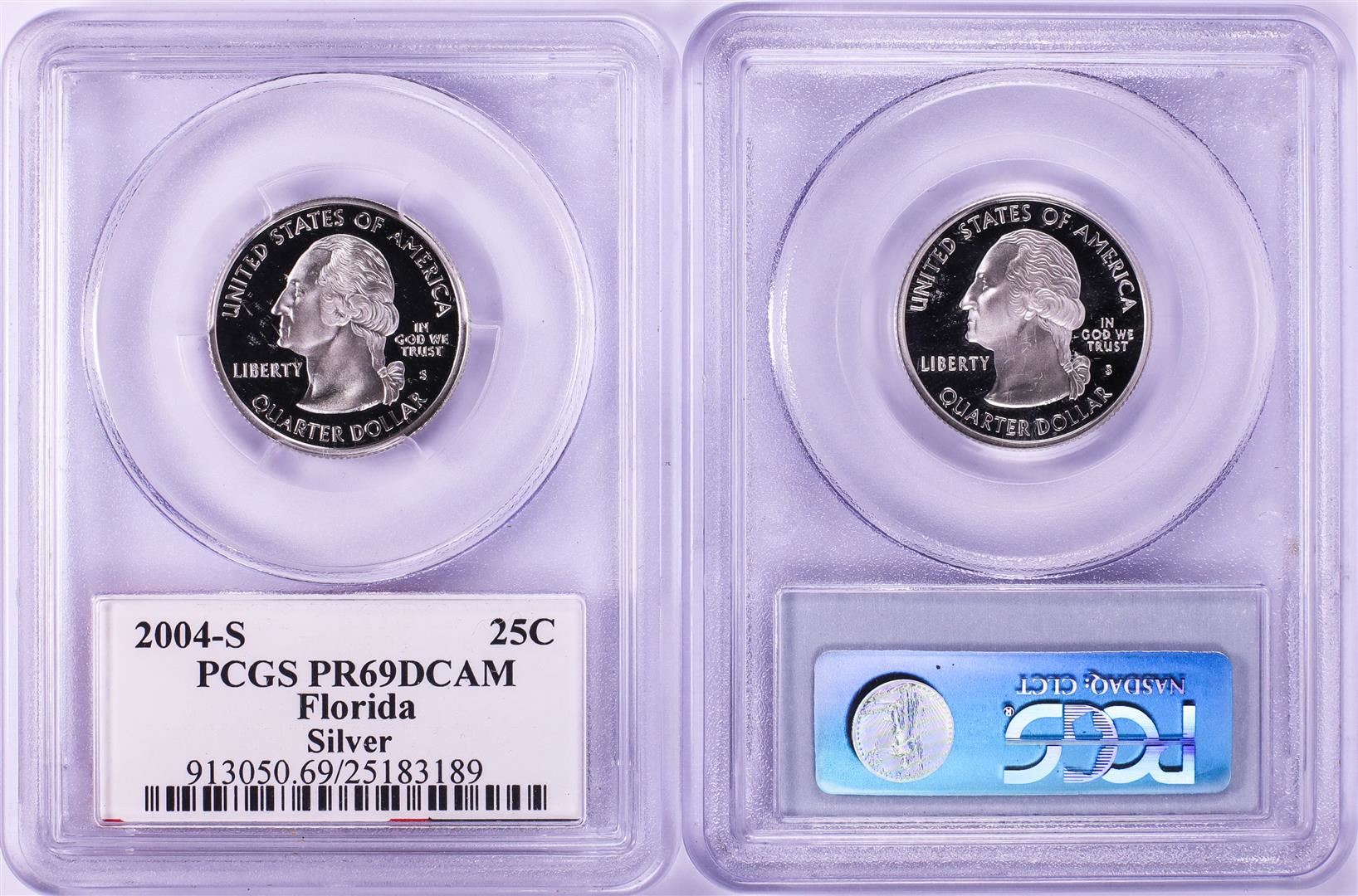 Lot of (2) 2004-S Proof Silver State Quarter Coins PCGS PR69DCAM