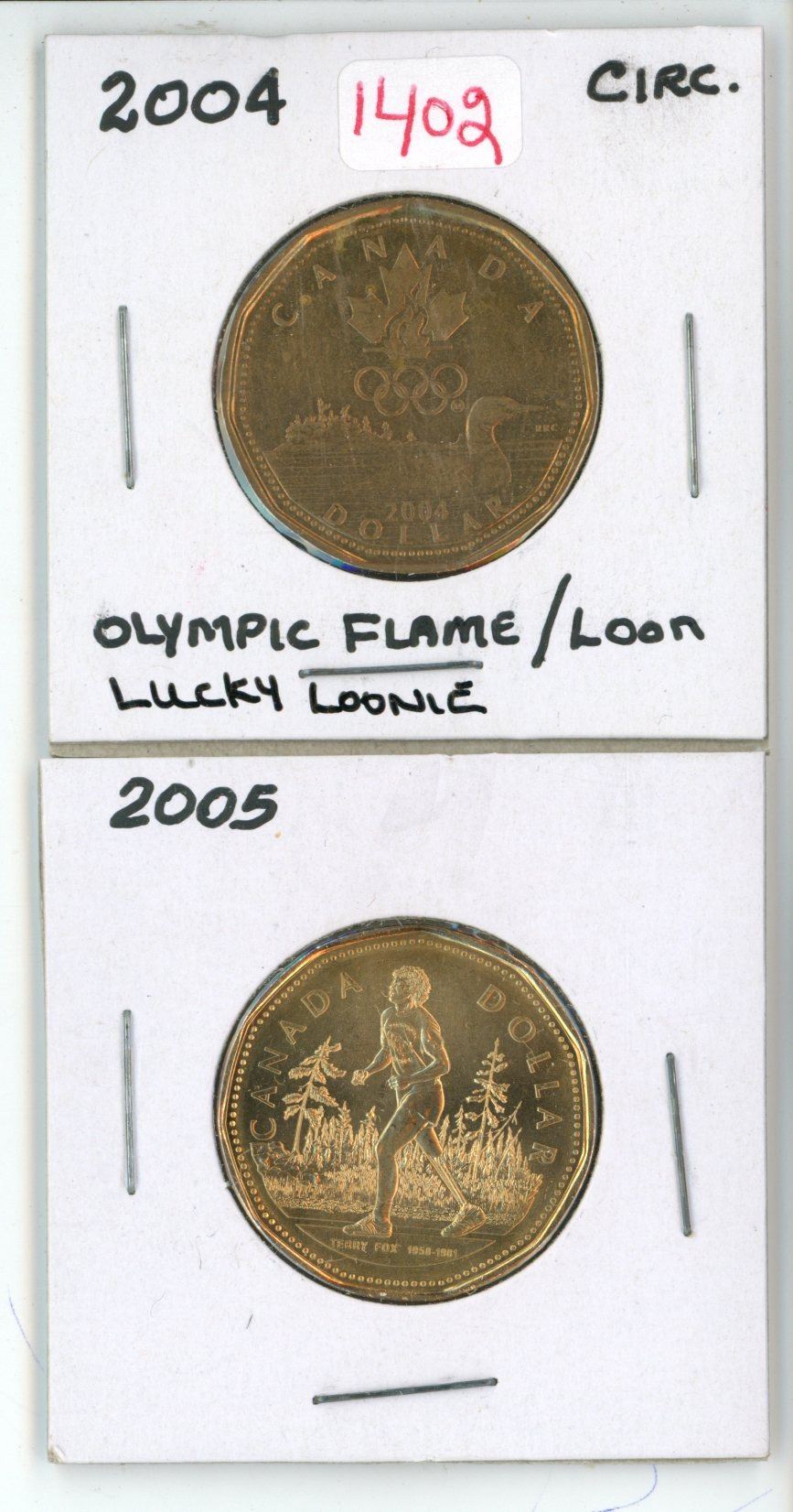 Lot of 2 (2004 circ. Olymic flame and 2005 canadian loonies