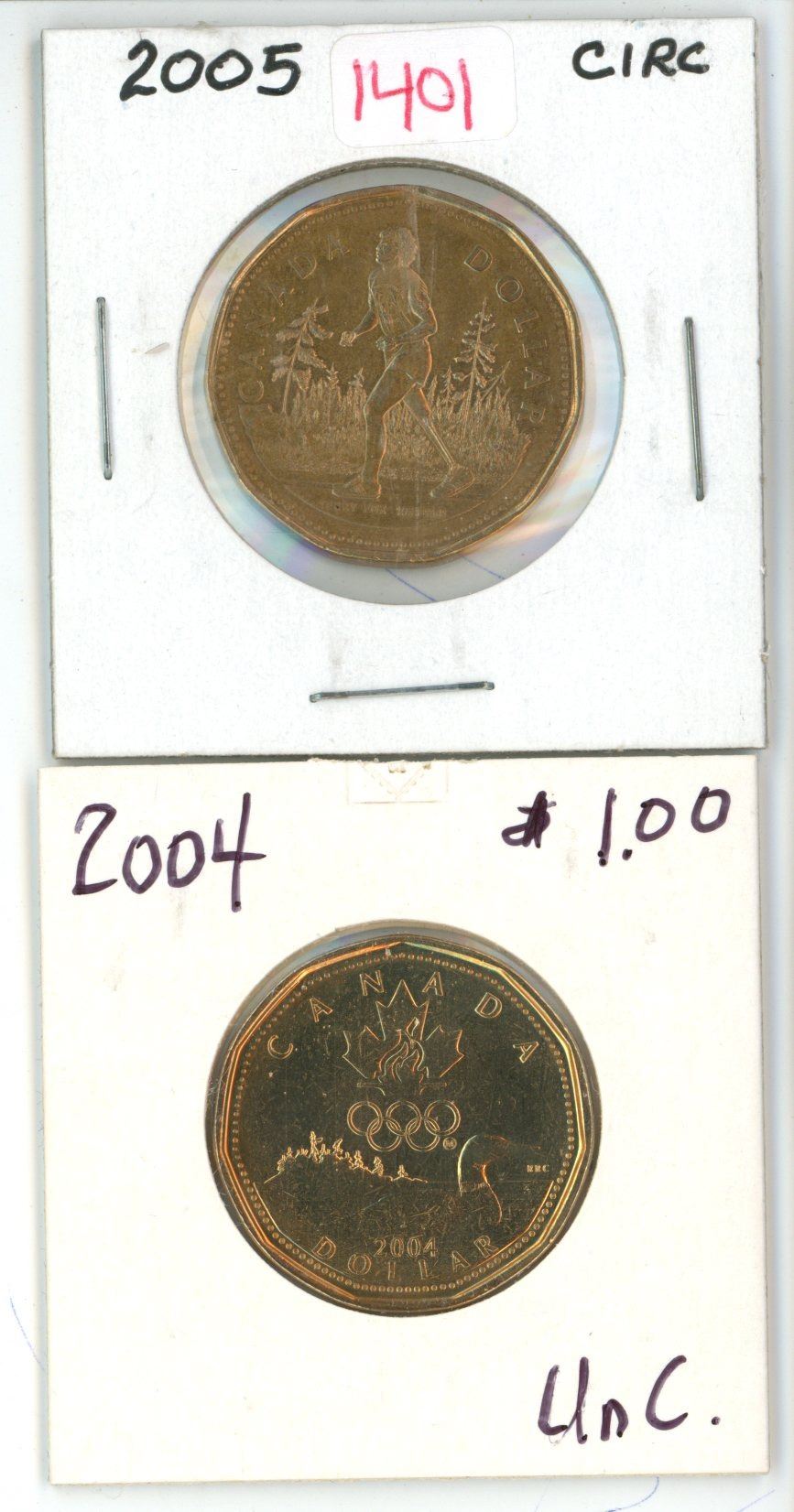Lot of 2 (2004UNC. And 2005 circ.) canadian loonies