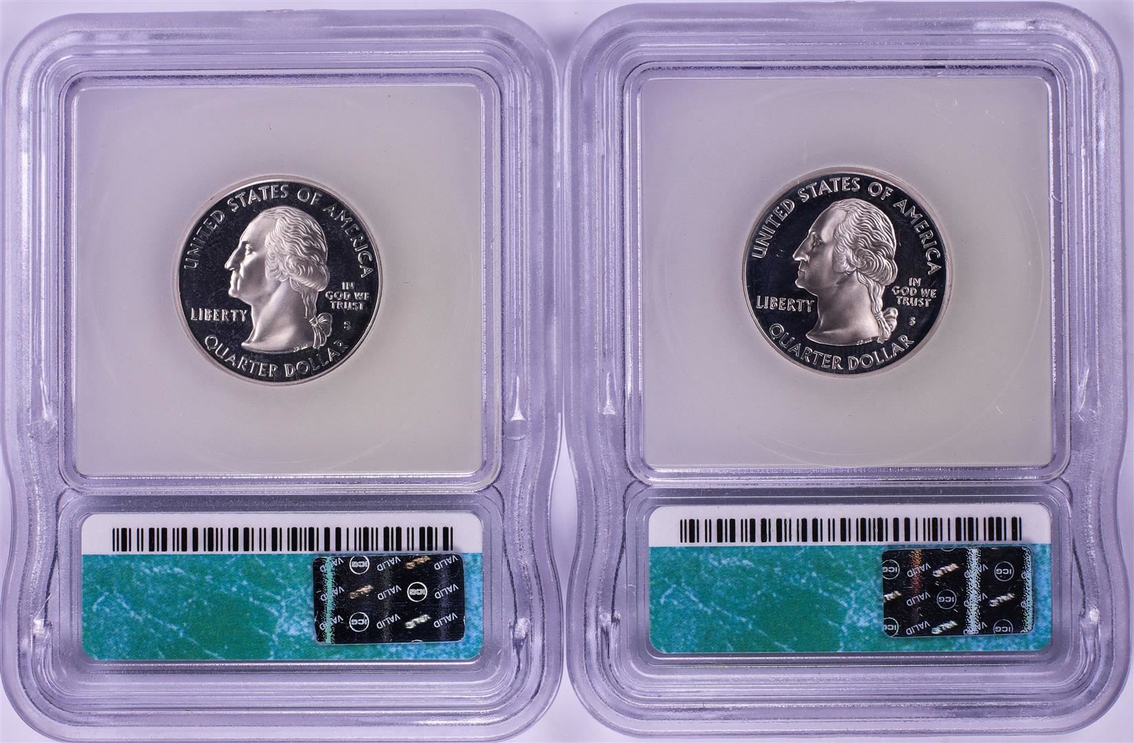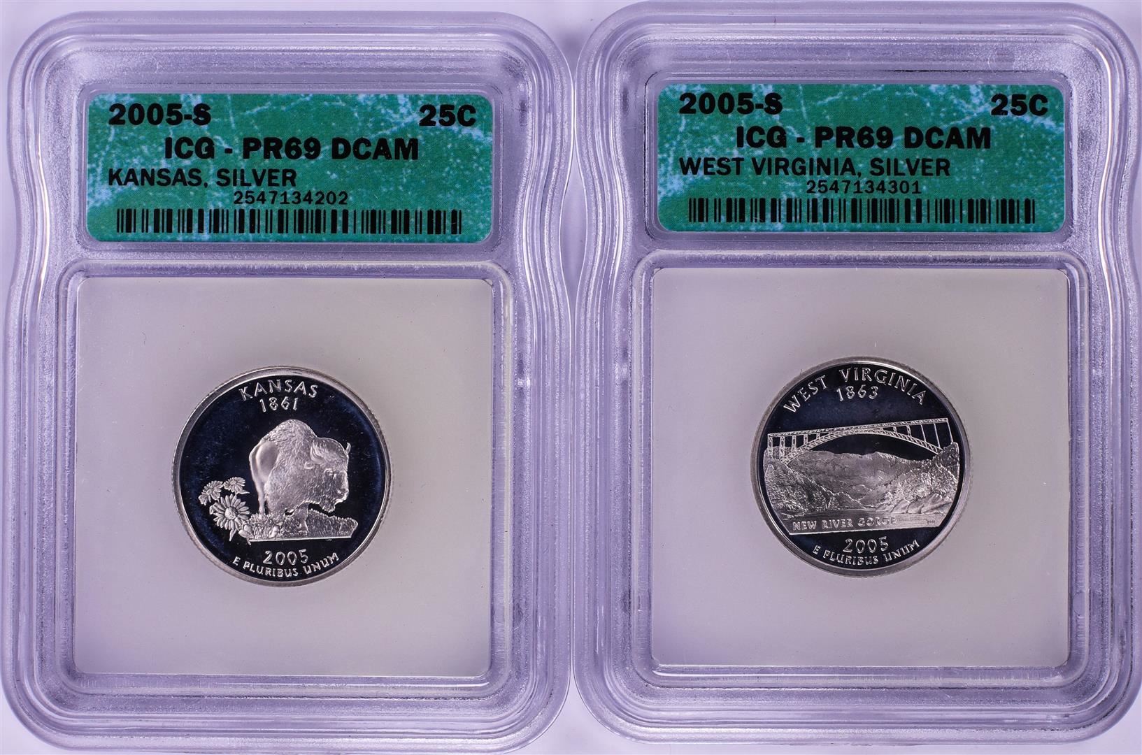 One Lot of (2) 2005-S Proof Silver State Quarter Coins ICG PR69DCAM. ICG Certified.