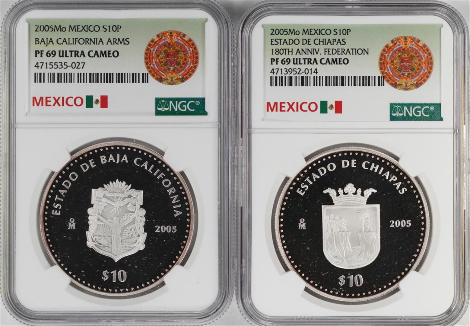Lot of (2) 2005Mo Mexico Proof 10 Pesos Silver Coins NGC PF69 Ultra Cameo