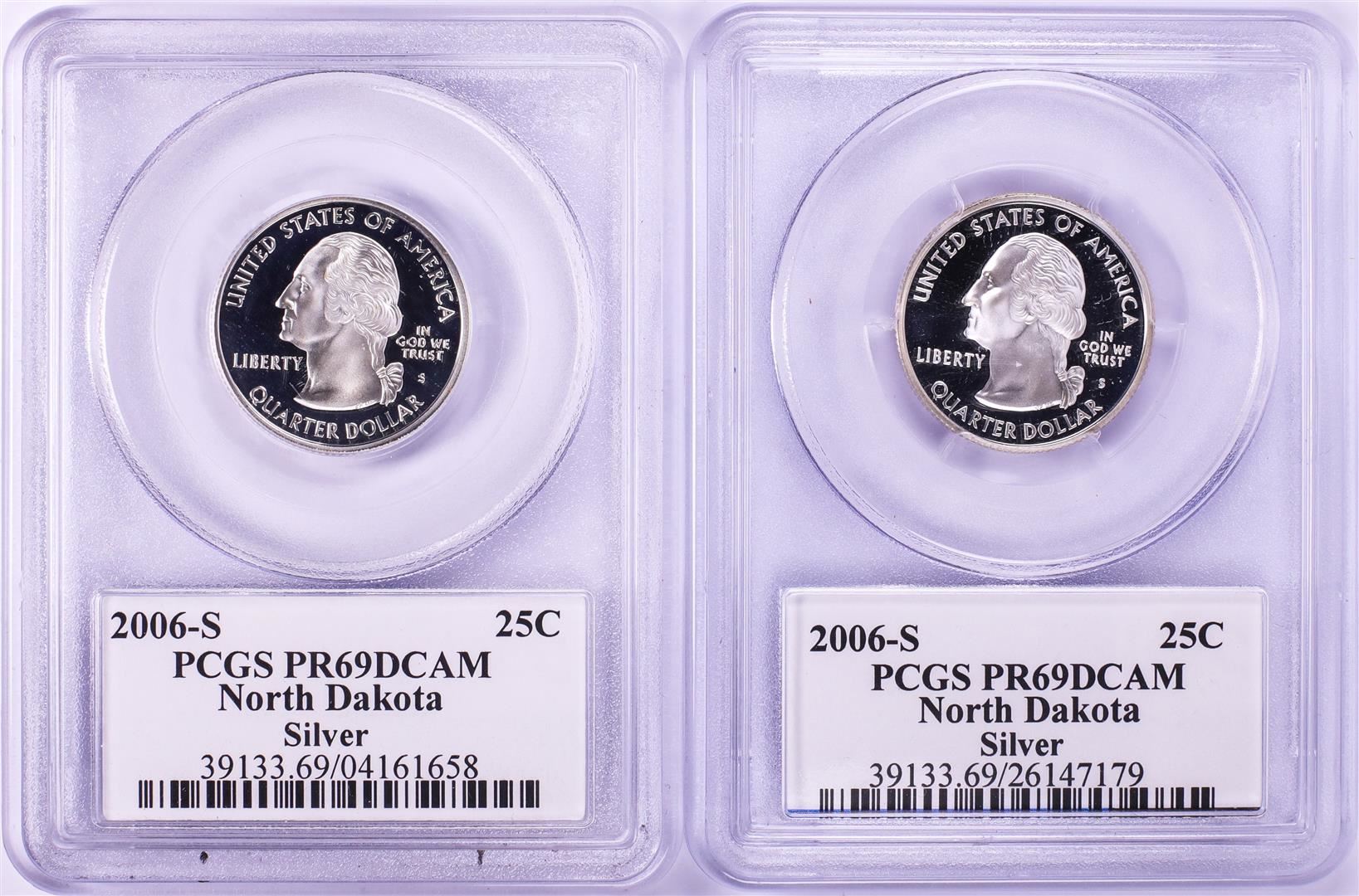 Lot of (2) 2006-S Proof Silver North Dakota State Quarter Coins PCGS PR69DCAM