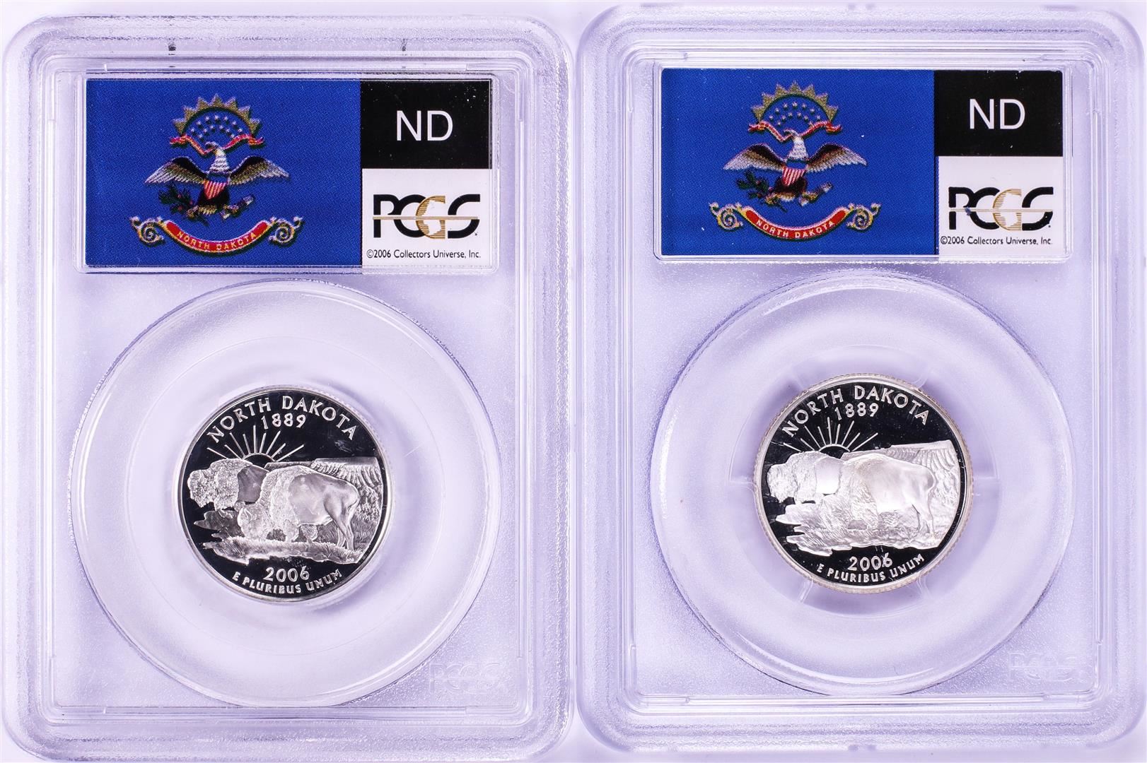 One Lot of (2) 2006-S Proof Silver North Dakota State Quarter Coins PCGS PR69DCAM.