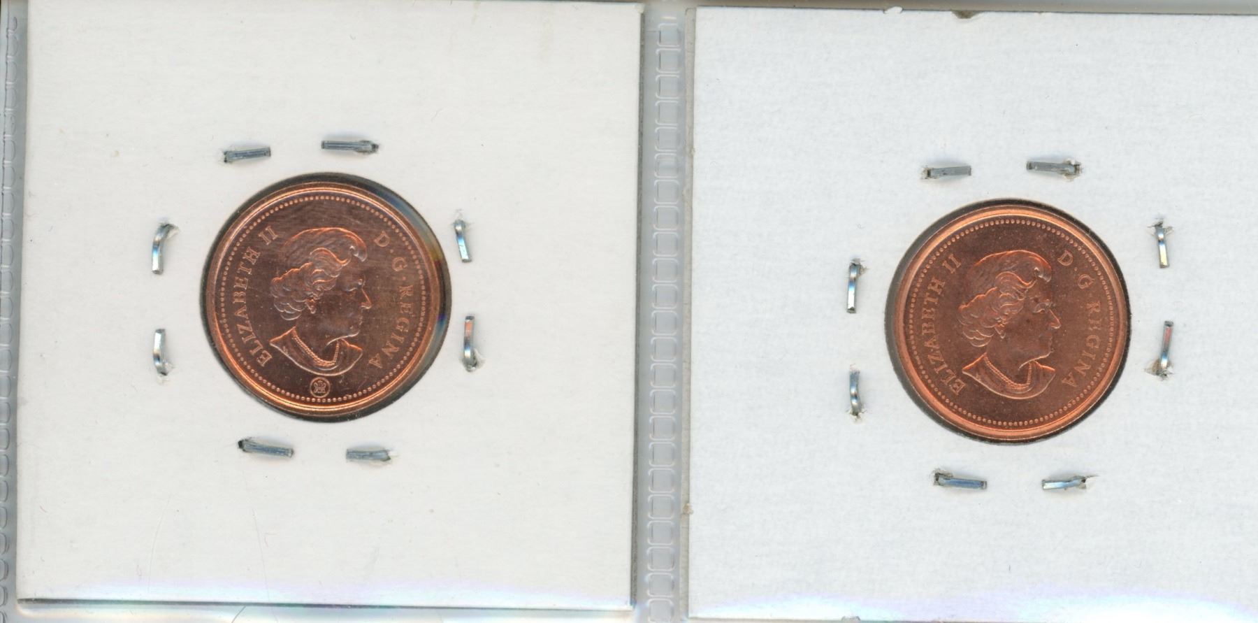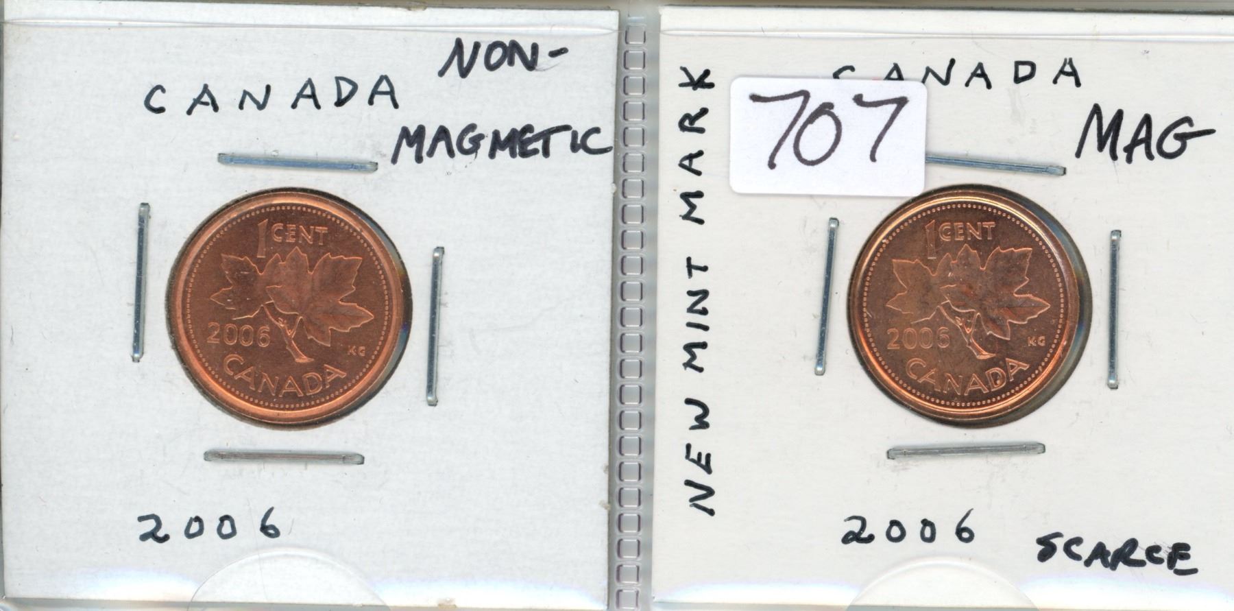Lot of 2 2006 Small Cents Varieties. Includes 2006 no logo non-magnetic & Scarce 2006 logo magnetic. Both coins Brilliant Uncirculated.