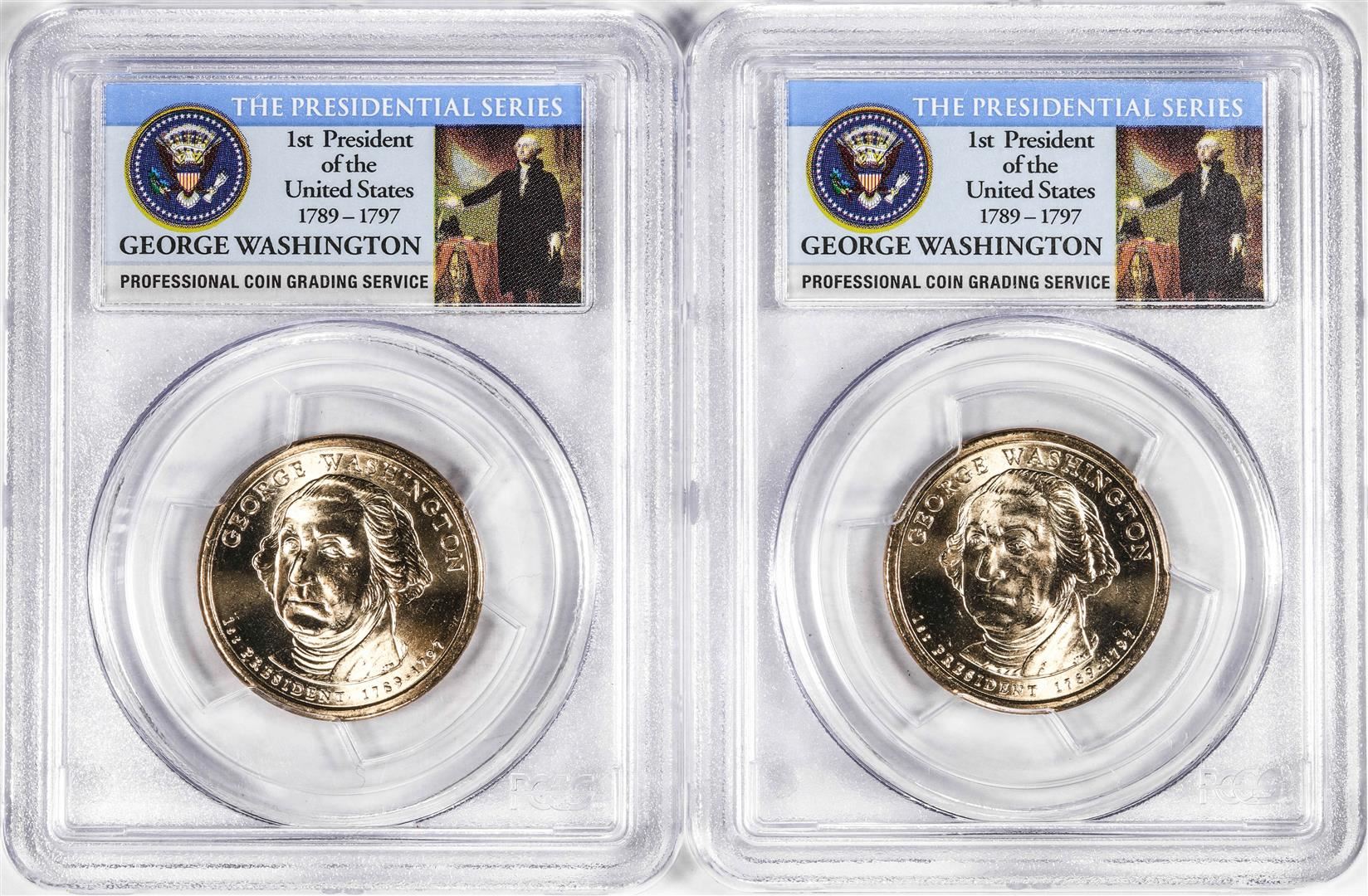 Lot of (2) 2007-P George Washington Presidential Dollar Coins PCGS MS65