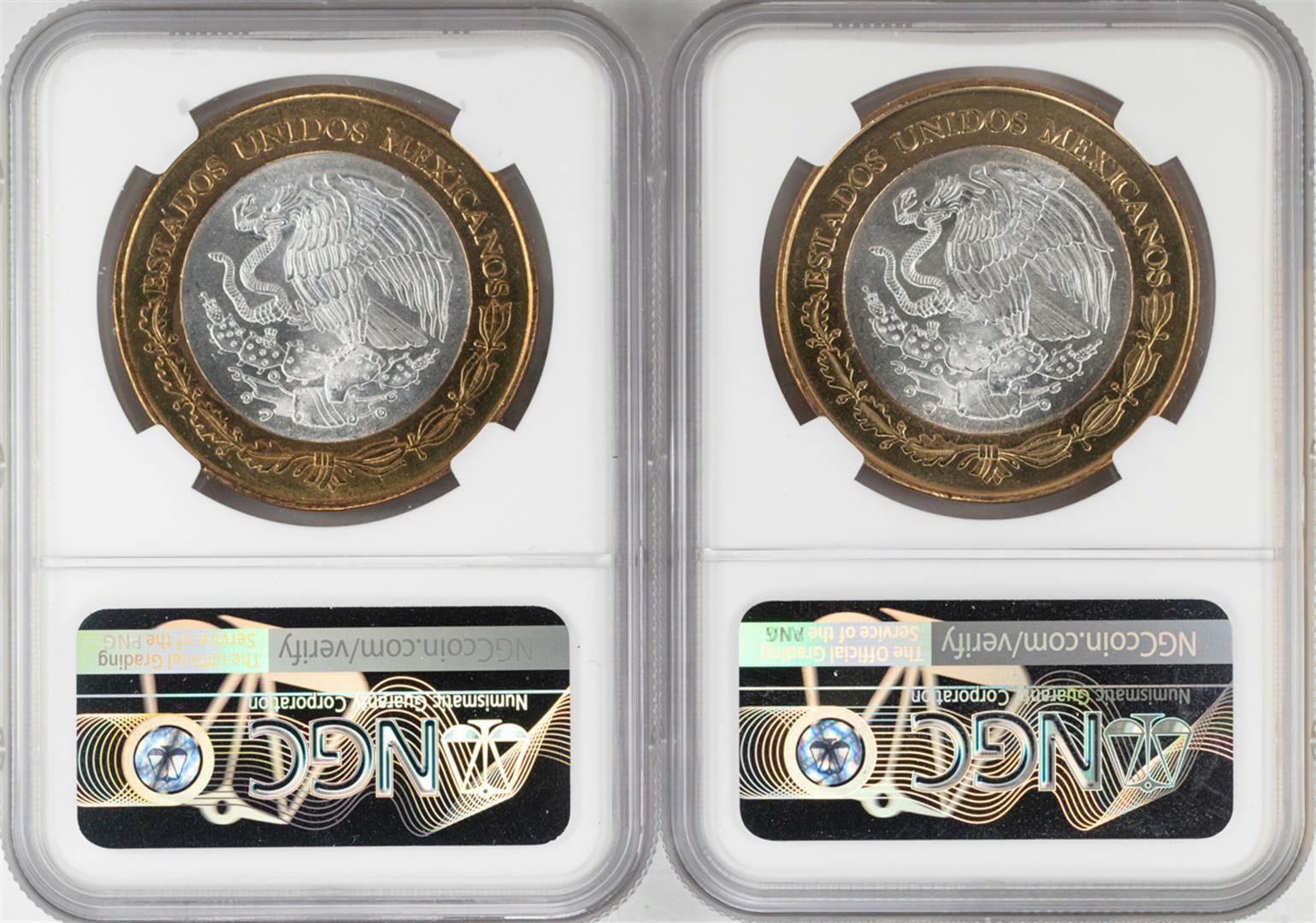 Lot of (2) 2007Mo Mexico Bi-metal 100 Pesos Silver Coins NGC MS64