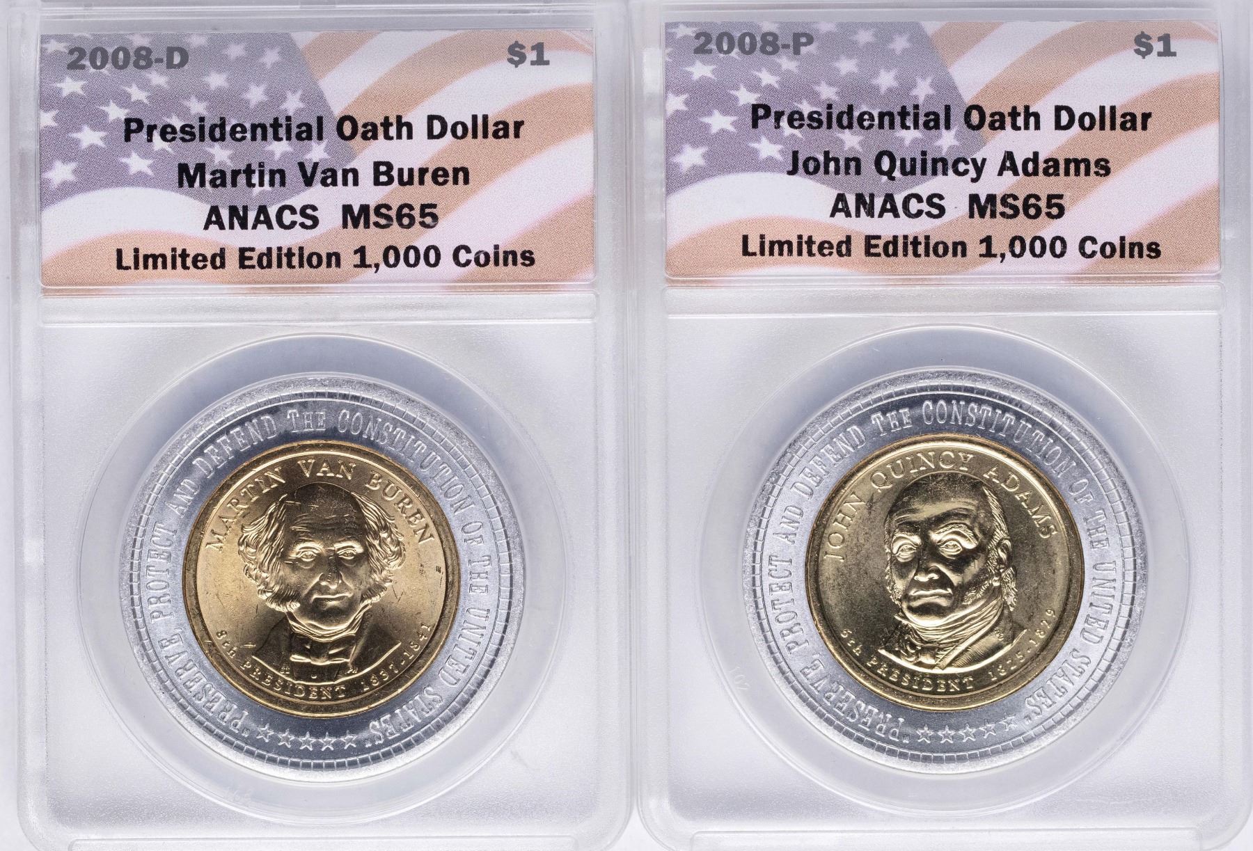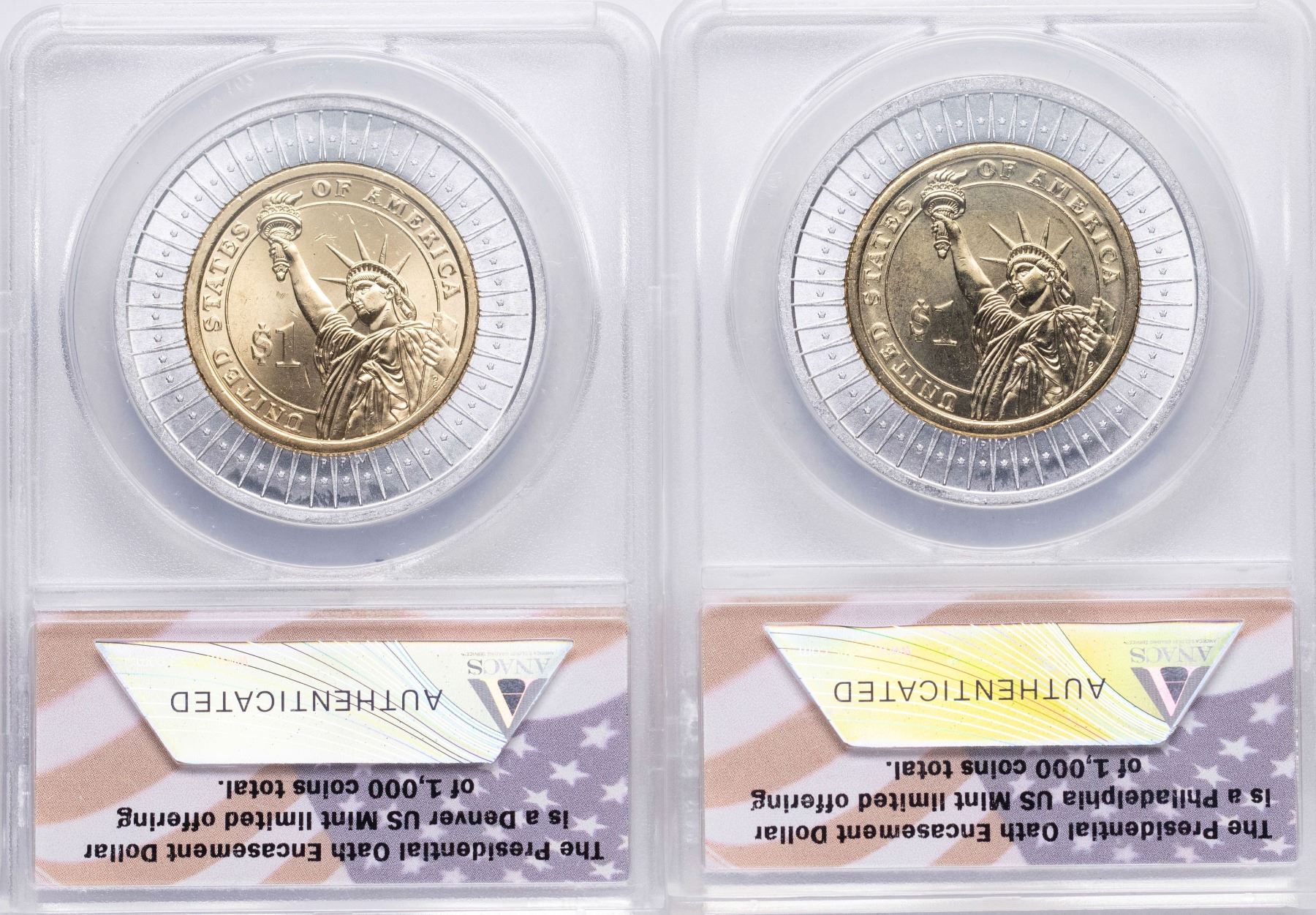 One Lot of (2) 2008 Presidential Oath Dollar Coins ANACS MS65.