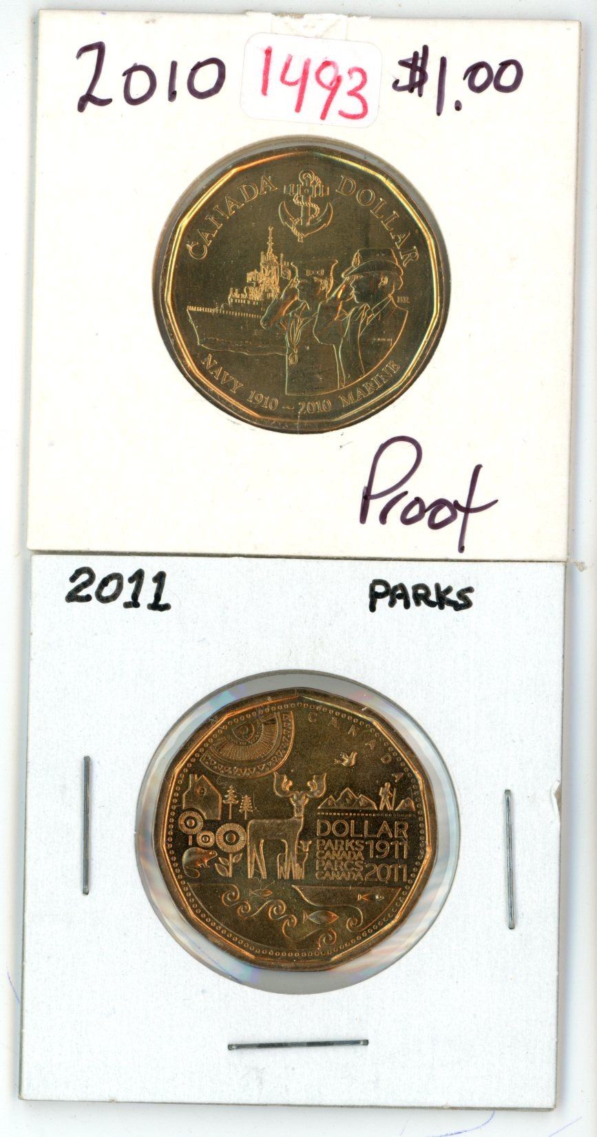 Lot of 2 ( 2010 proof and 2011 park) canadian loonies