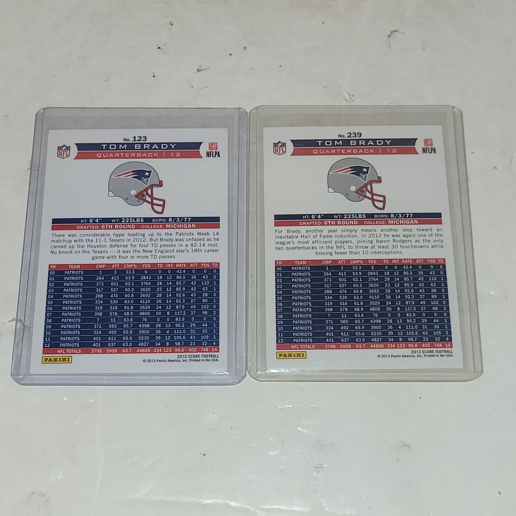 Lot of 2 2011 Tom Brady NFL Cards