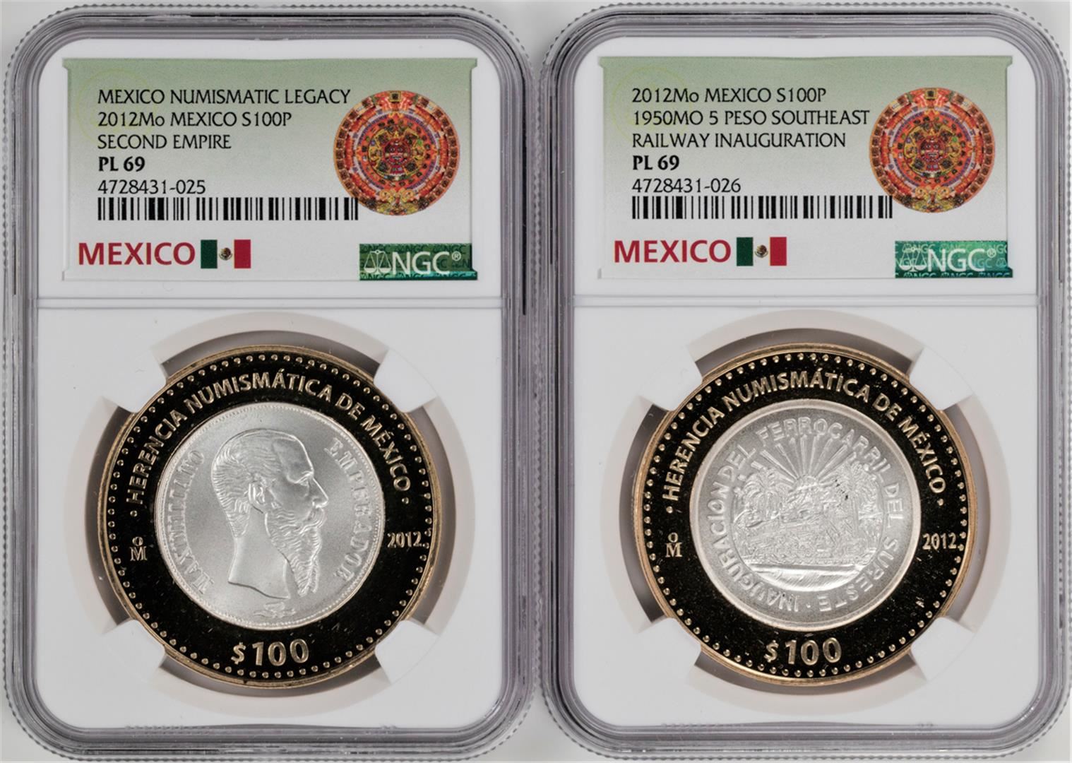 One Lot of (2) 2012 Mexico Second Empire Coins NGC PL69. NGC Certified.