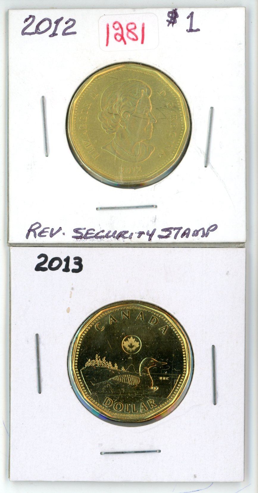 Lot of 2 (2012 Rev. Security Stamp and 2013) Canadian Loonies
