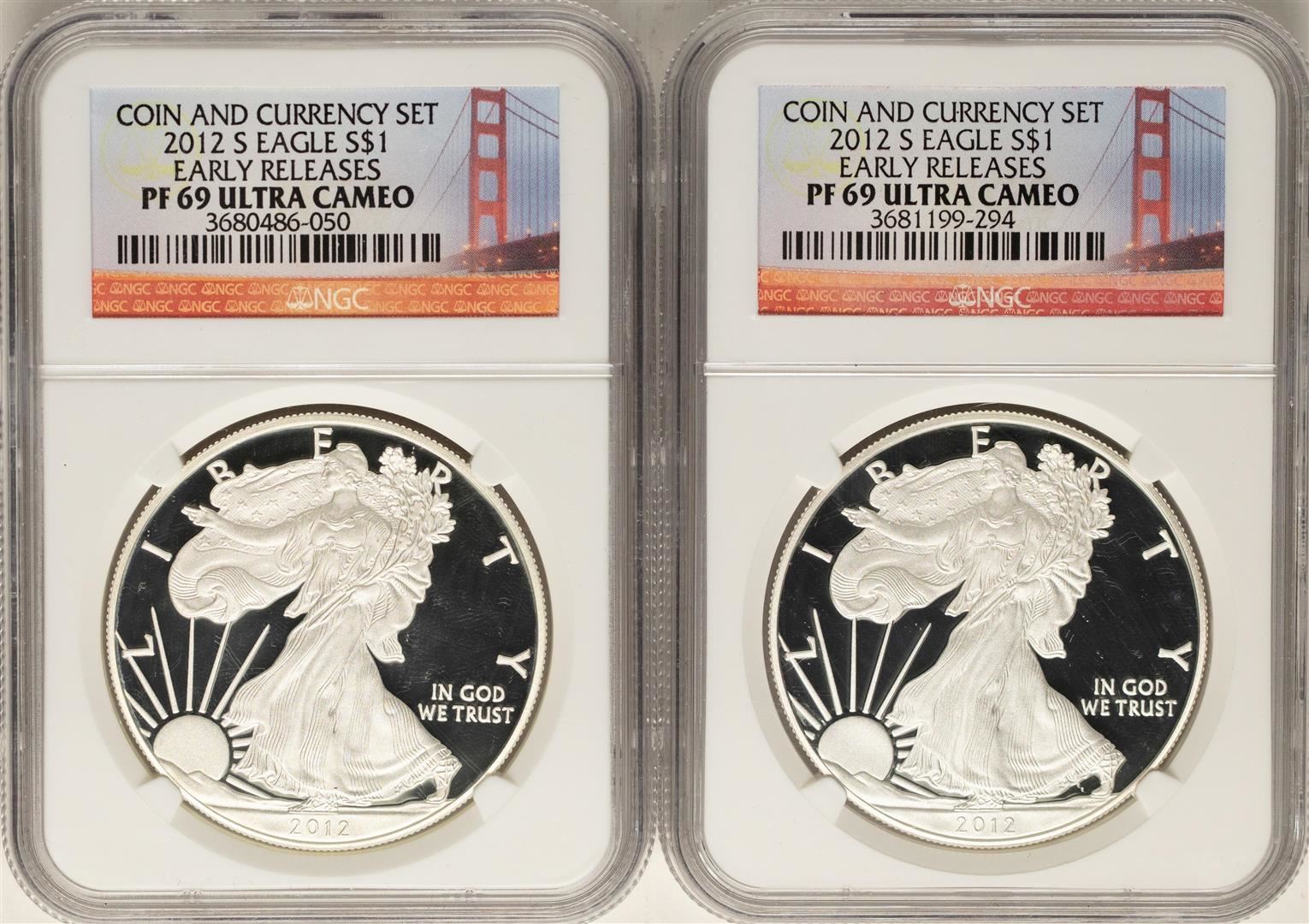Lot of (2) 2012-S $1 Proof American Silver Eagle Coins NGC PF69 Ultra Cameo