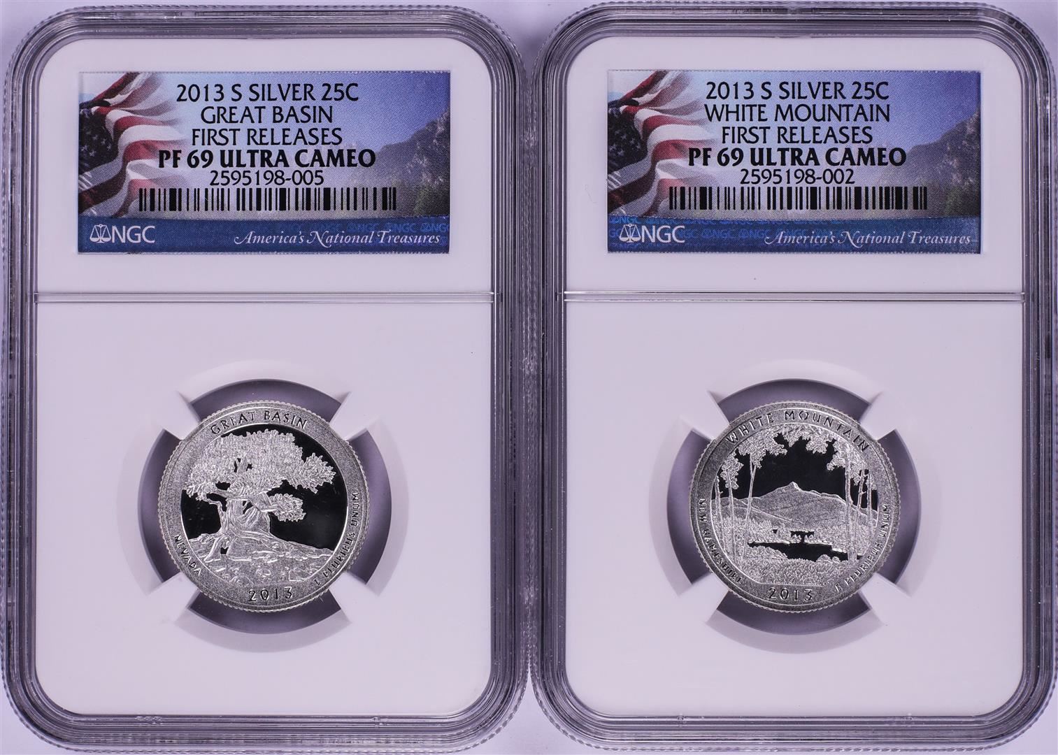 Lot of (2) 2013-S Proof Silver America's National Treasures Quarters NGC PF69 Ultra Cameo