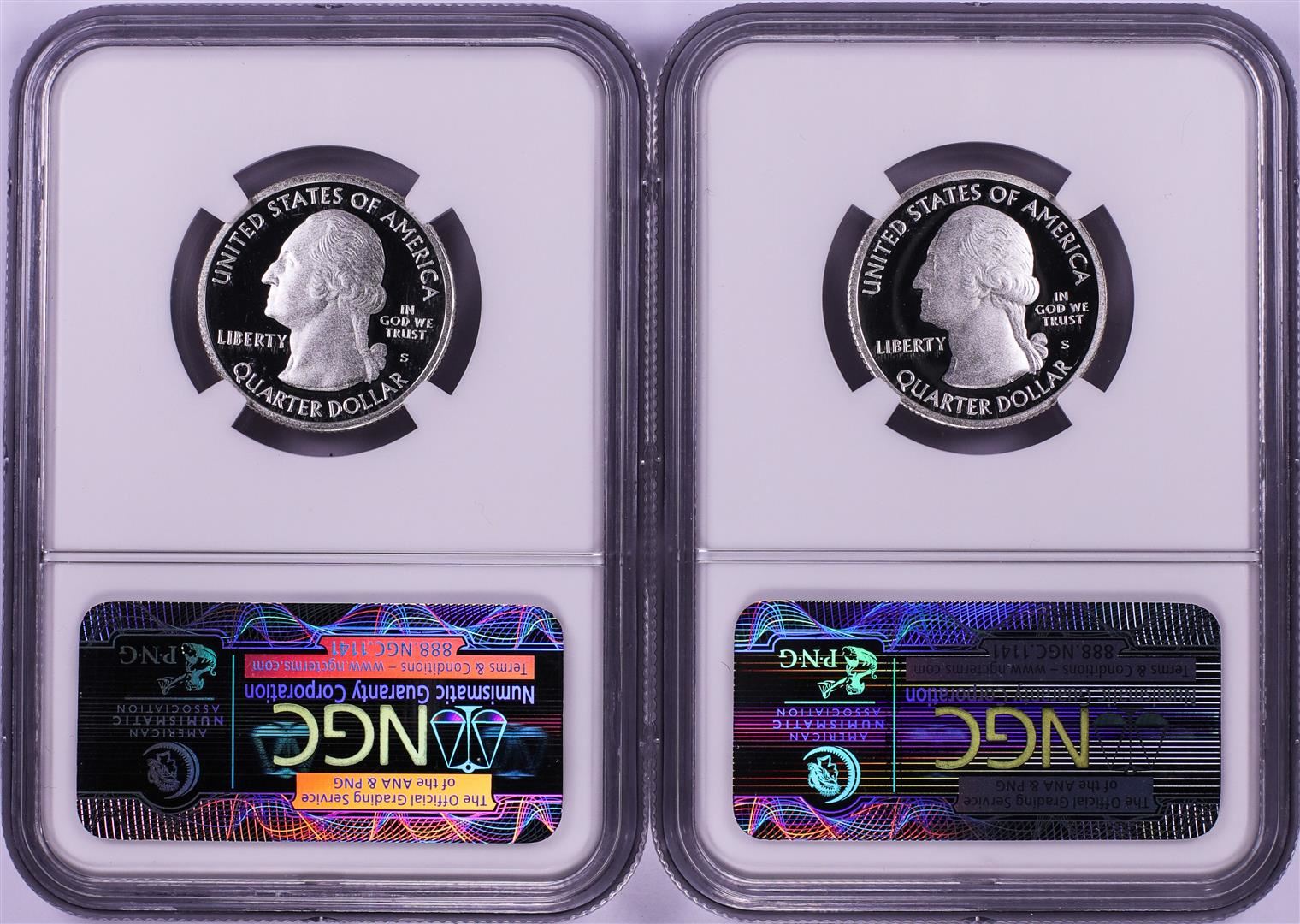 One Lot of (2) 2013-S Proof Silver America's National Treasures Quarters NGC PF69 Ultra Cameo. NGC Certified.