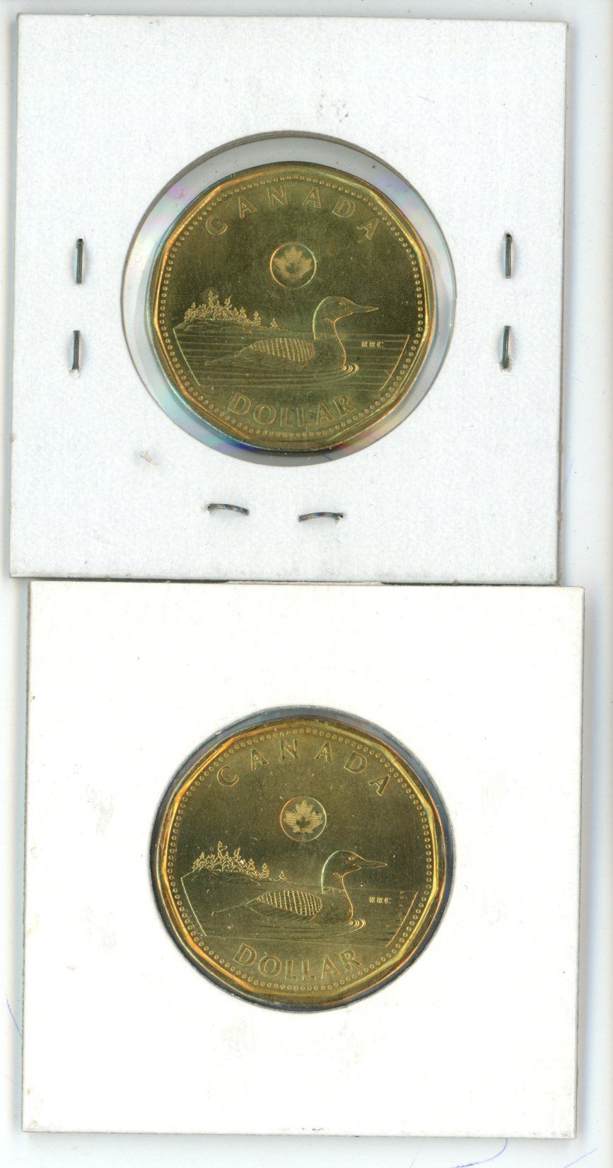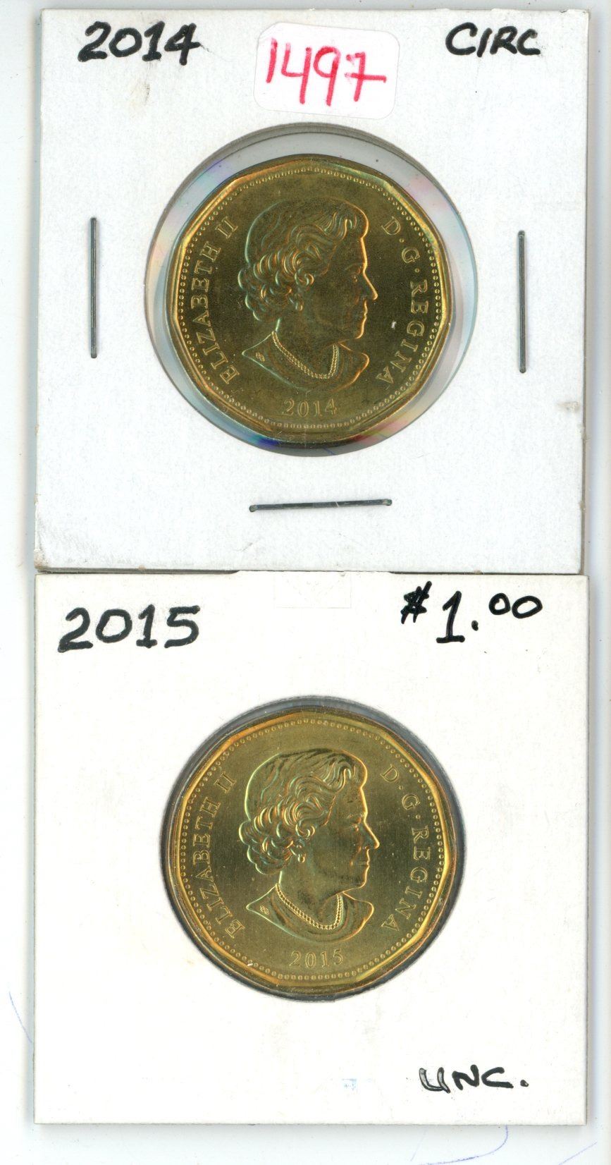 Lot of 2 (2014 and circ and 2015 UNC) canadian loonies