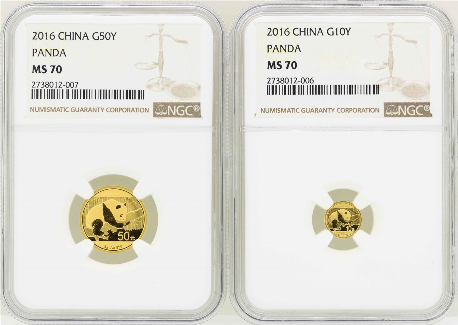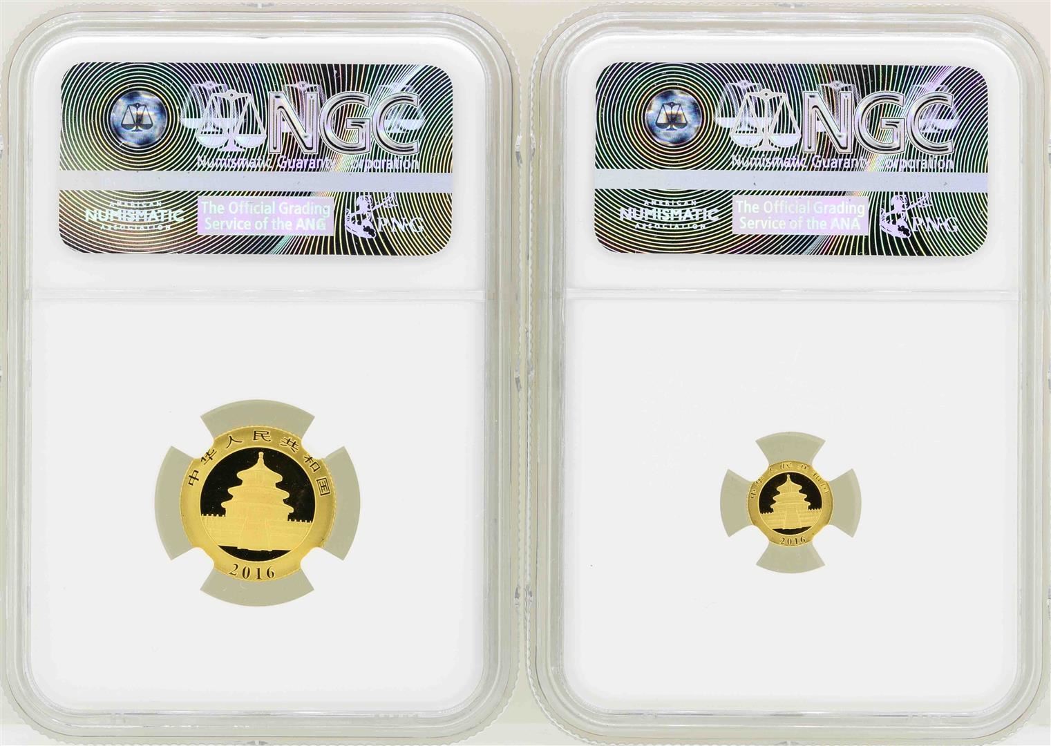 One Lot of (2) 2016 China Gold Panda Coins NGC MS70. NGC Certified.