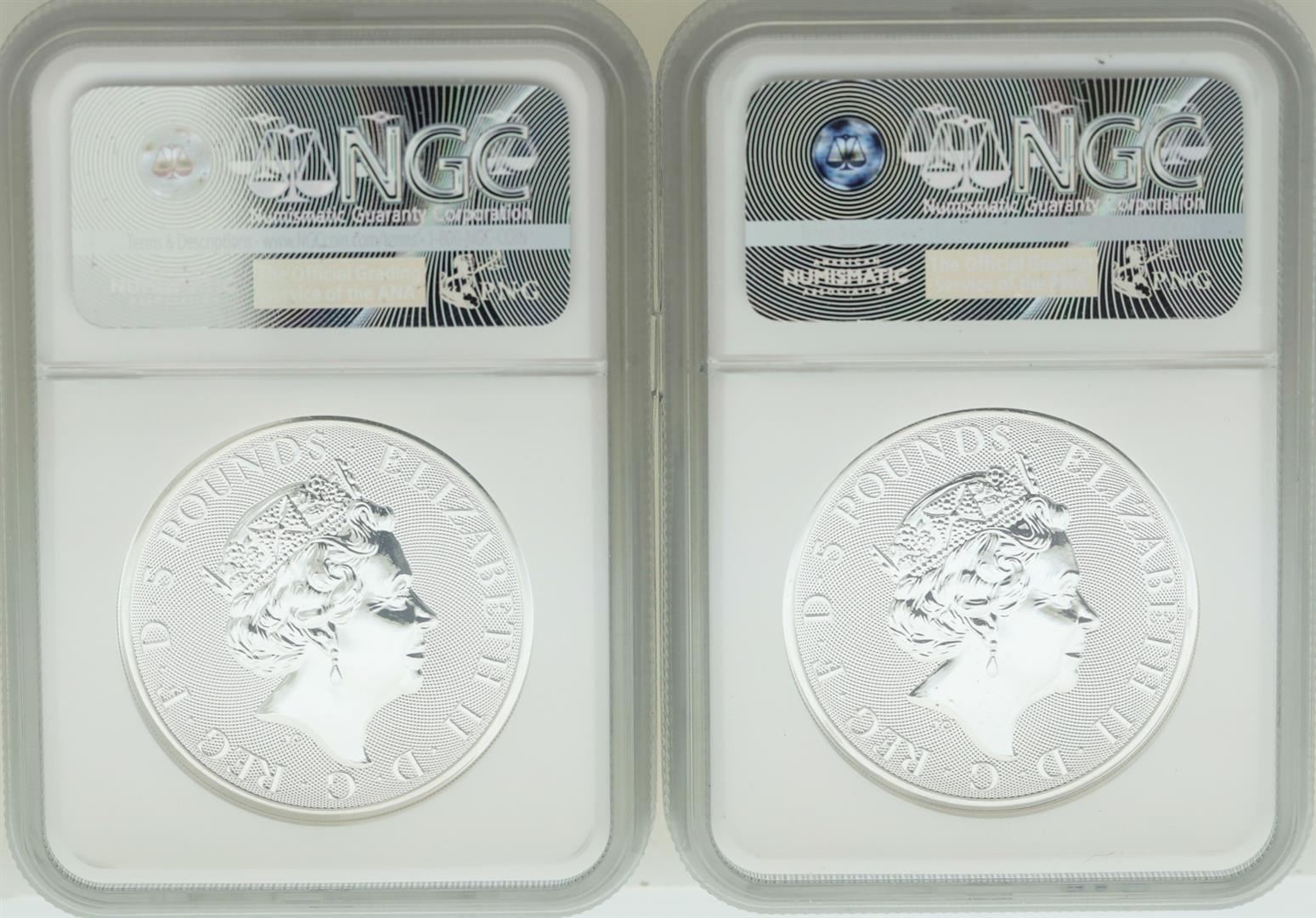 Lot of (2) 2018 Great Britain 5 Pound Queen's Beasts Silver Coins NGC MS69 Early