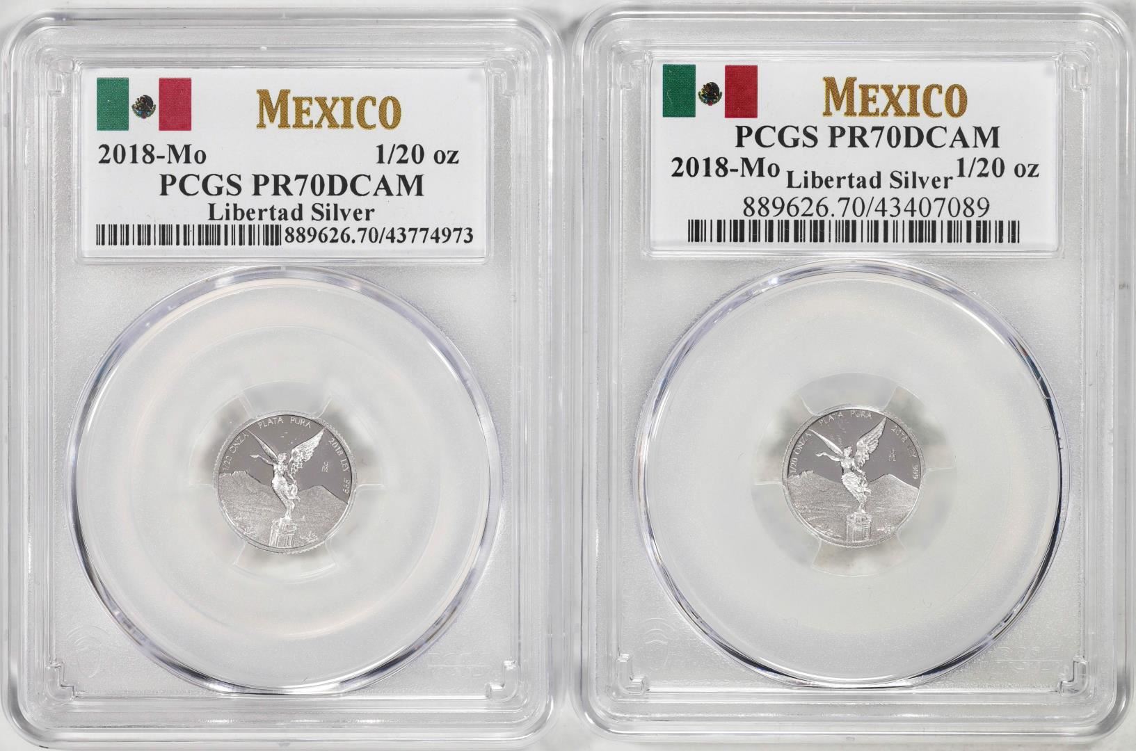 Lot of (2) 2018-Mo Mexico Proof 1/20 oz Silver Libertad Coins PCGS PR70DCAM
