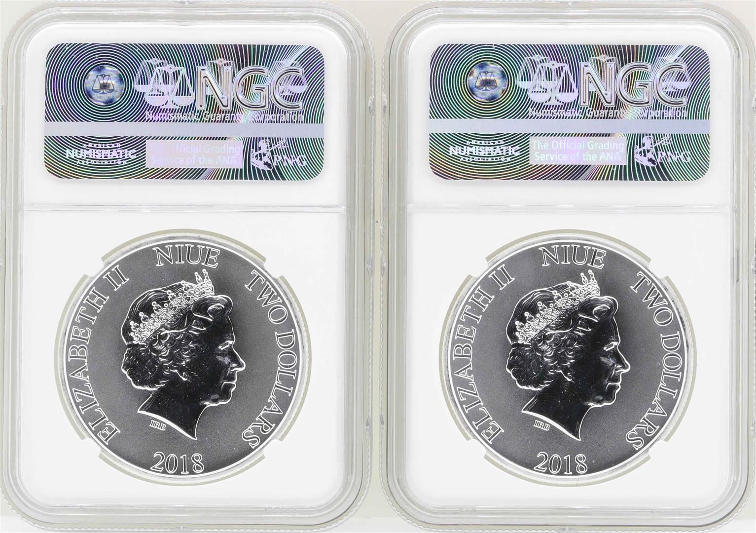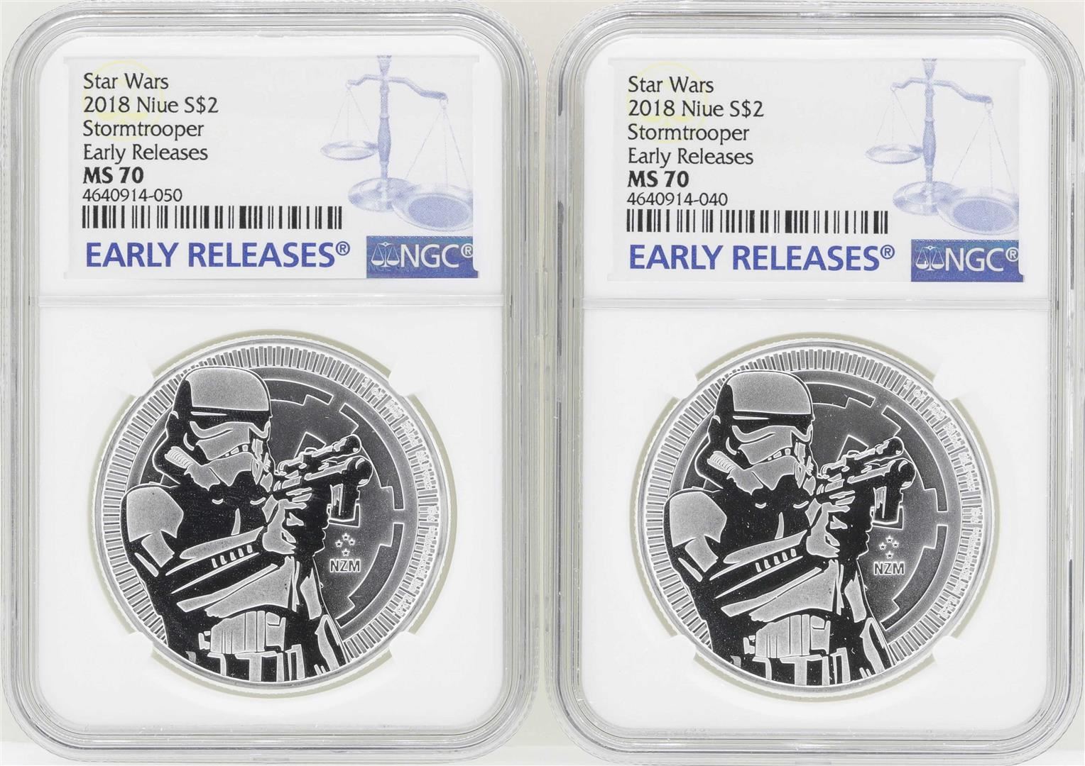 One Lot of (2) 2018 Niue $2 Star Wars Stormtrooper Silver Coins NGC MS70 Early Releases. NGC Certified.