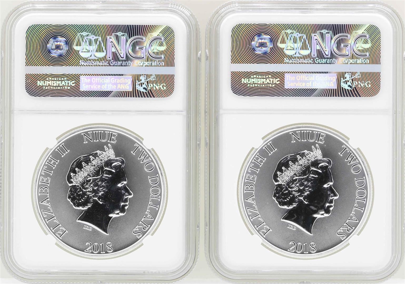 One Lot of (2) 2018 Niue $2 Star Wars Stormtrooper Silver Coins NGC MS70 Early Releases. NGC Certified.