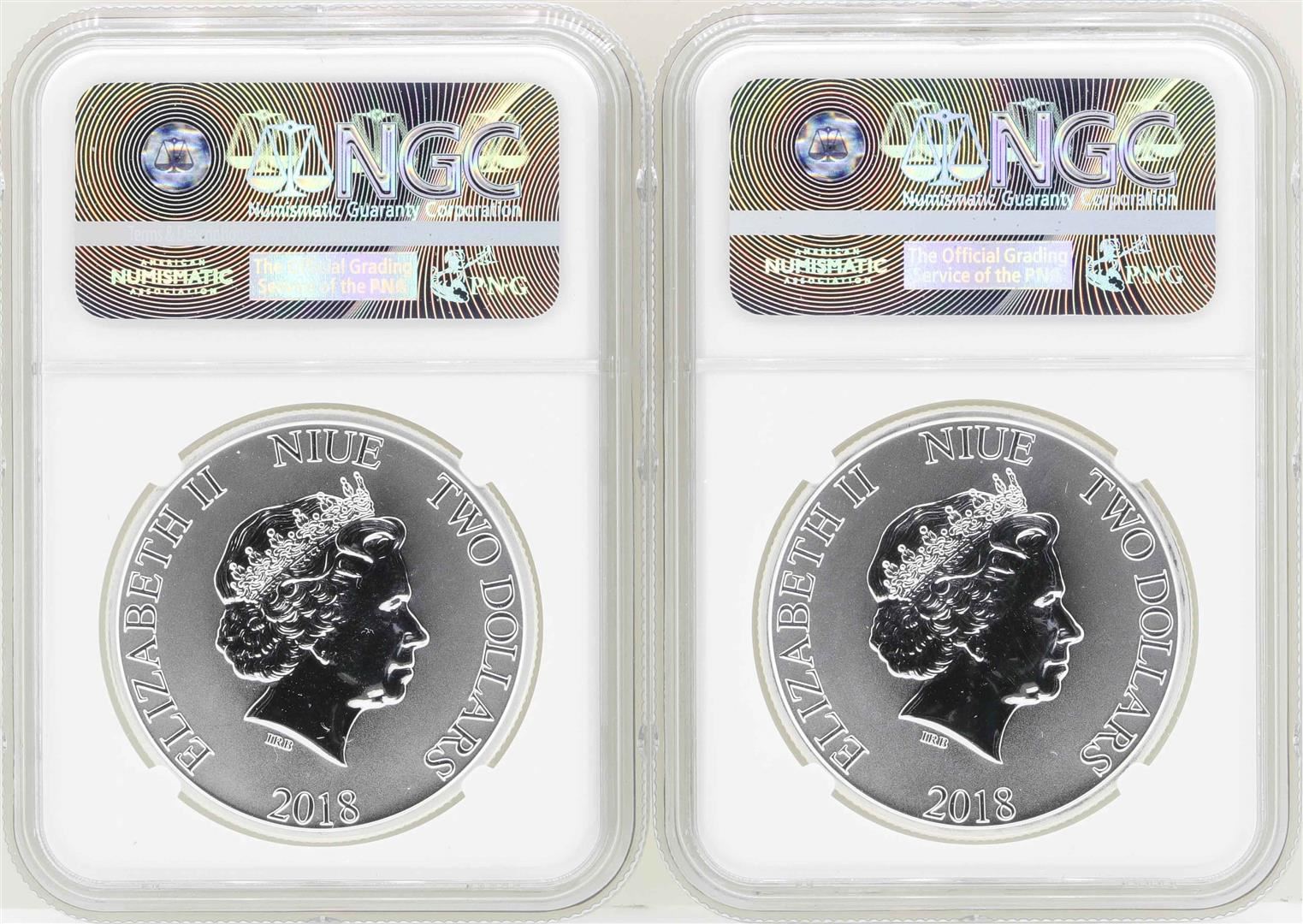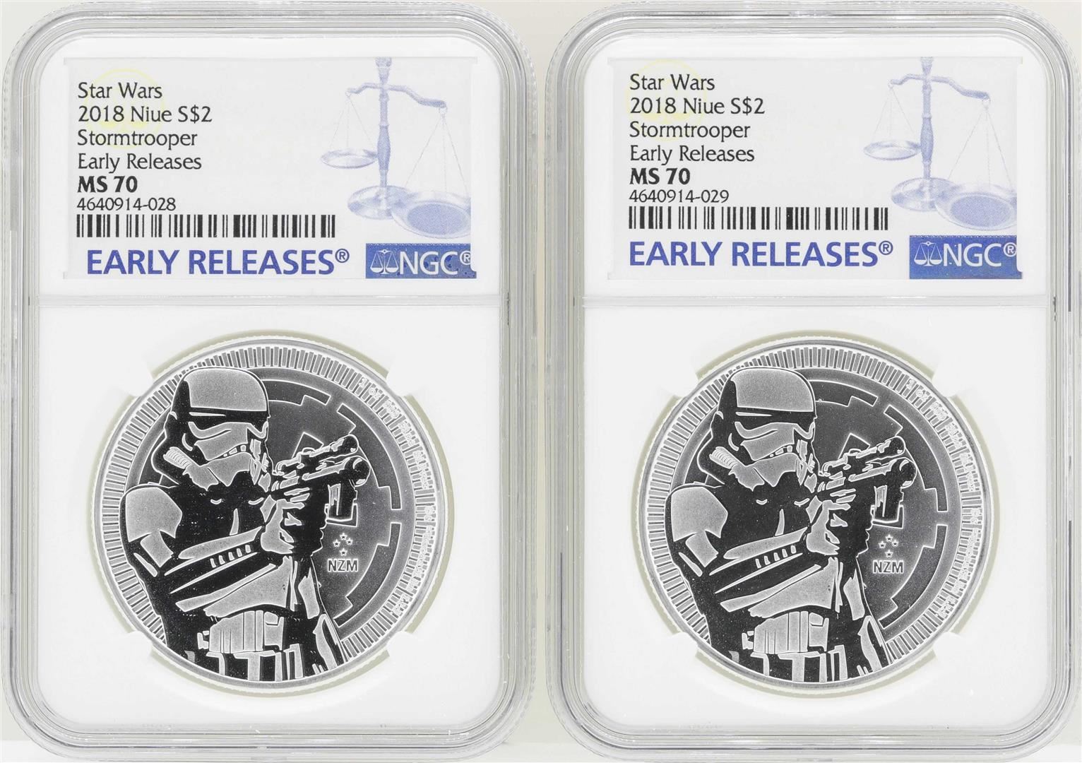 One Lot of (2) 2018 Niue $2 Star Wars Stormtrooper Silver Coins NGC MS70 Early Releases. NGC Certified.