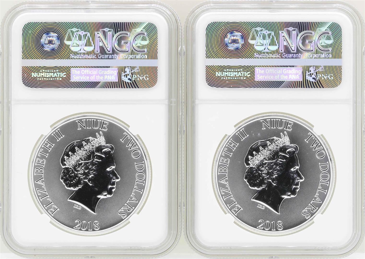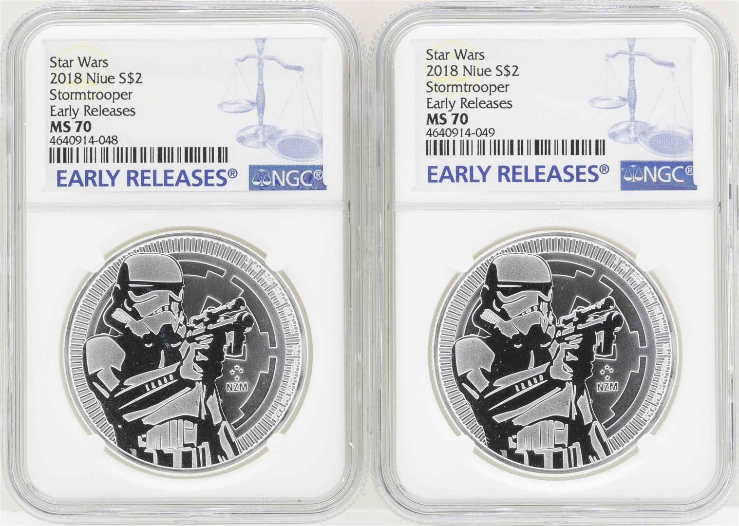 One Lot of (2) 2018 Niue $2 Star Wars Stormtrooper Silver Coins NGC MS70 Early Releases. NGC Certified.