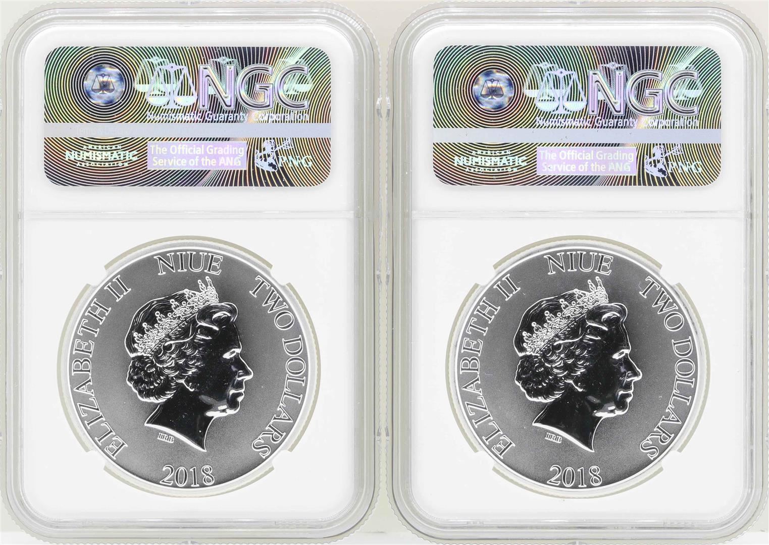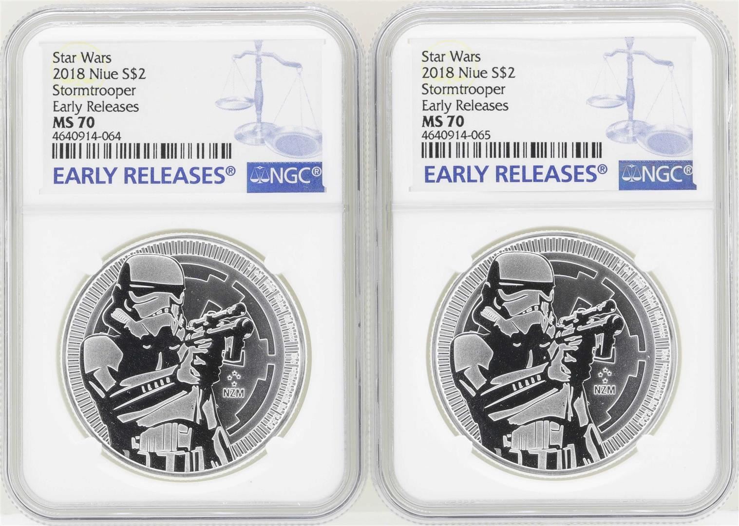 One Lot of (2) 2018 Niue $2 Star Wars Stormtrooper Silver Coins NGC MS70 Early Releases. NGC Certified.