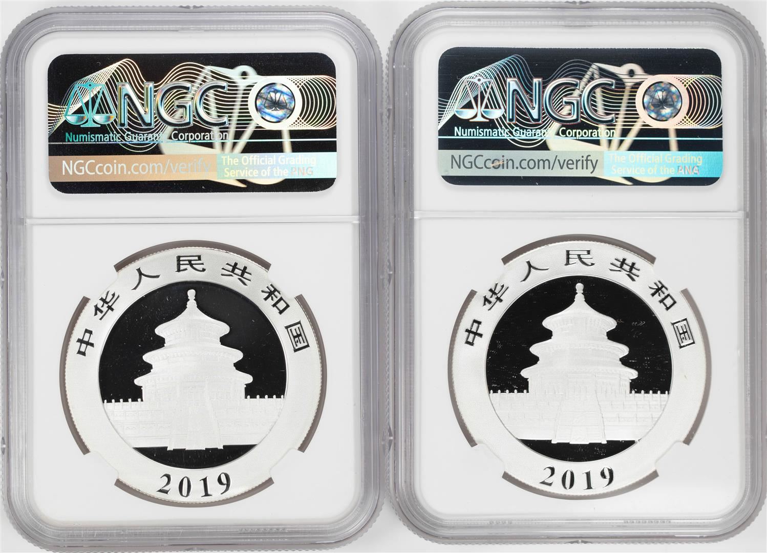 Lot of (2) 2019 China 10 Yuan Silver Panda Coins NGC MS70 Early Releases