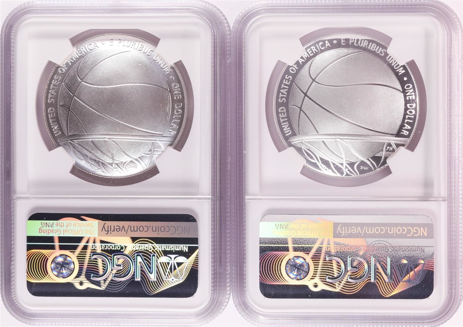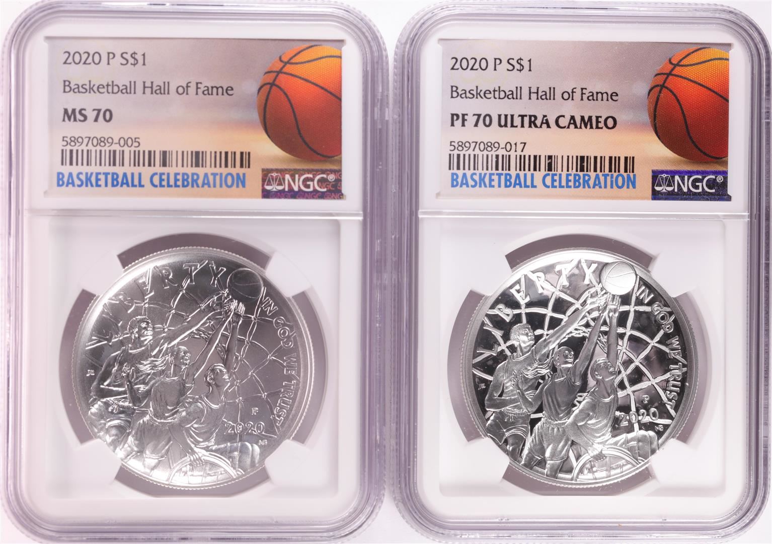 One Lot of (2) 2020 P $1 Basketball Hall of Fame Silver Coin NGC MS/PF70. NGC Certified.