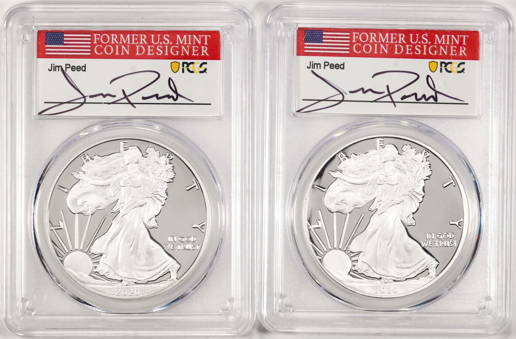 Lot of (2) 2020-W $1 Proof American Silver Eagle Coin PCGS PR70DCAM FDOI