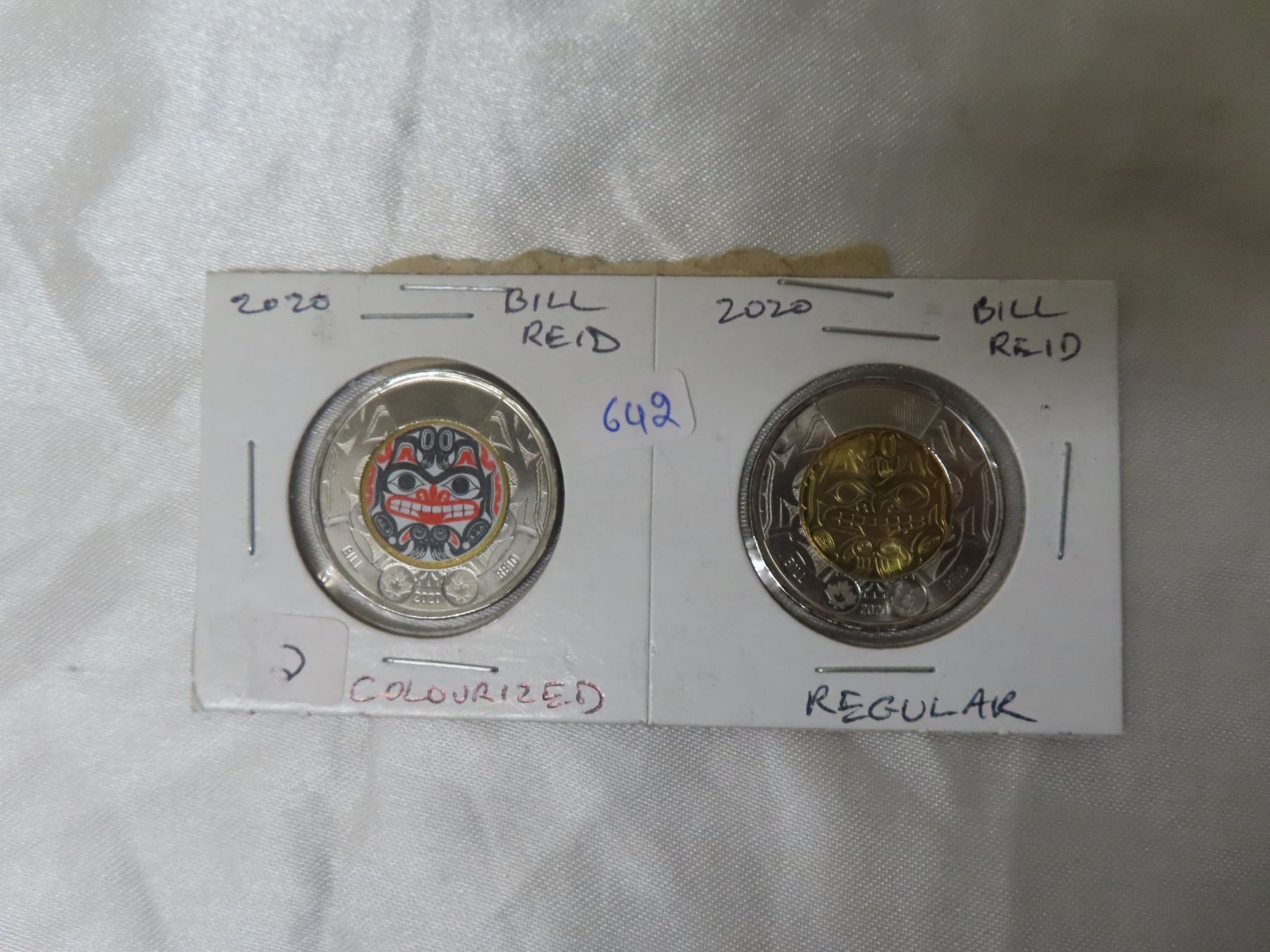 Lot of 2 2020 bill reid toonies ( coloured/non-coloured)