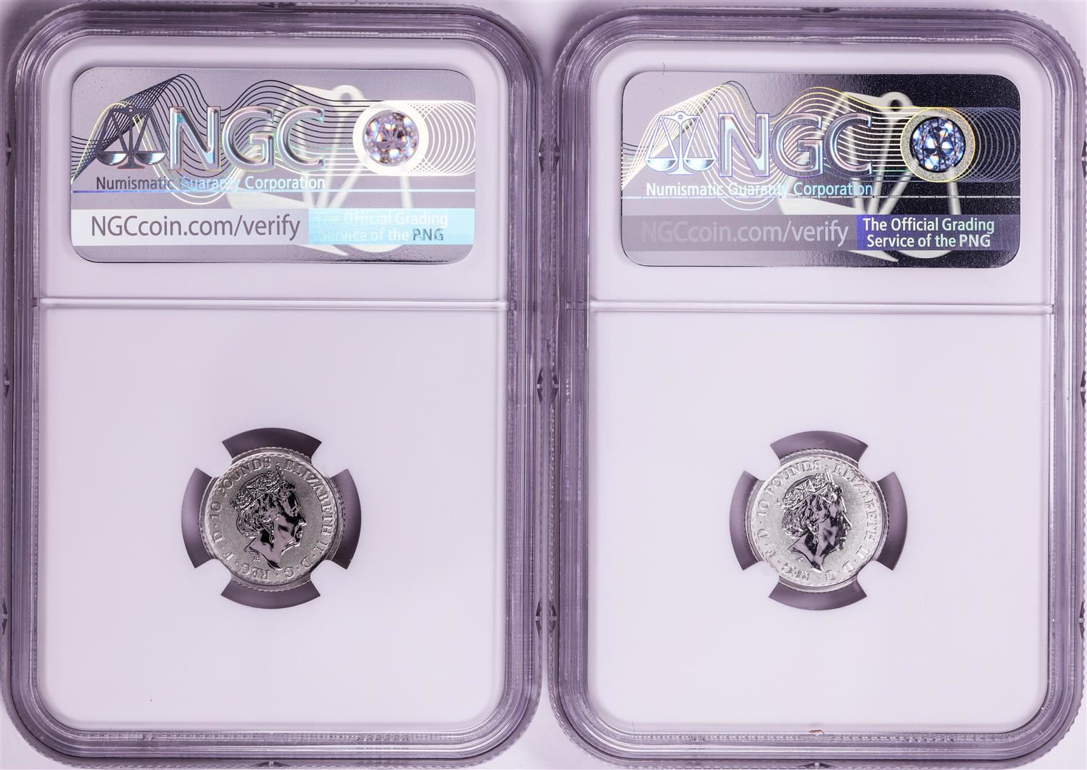 Lot of (2) 2021 Great Britain 10 Pounds Britannia 1/10oz Platinum Coins NGC MS69