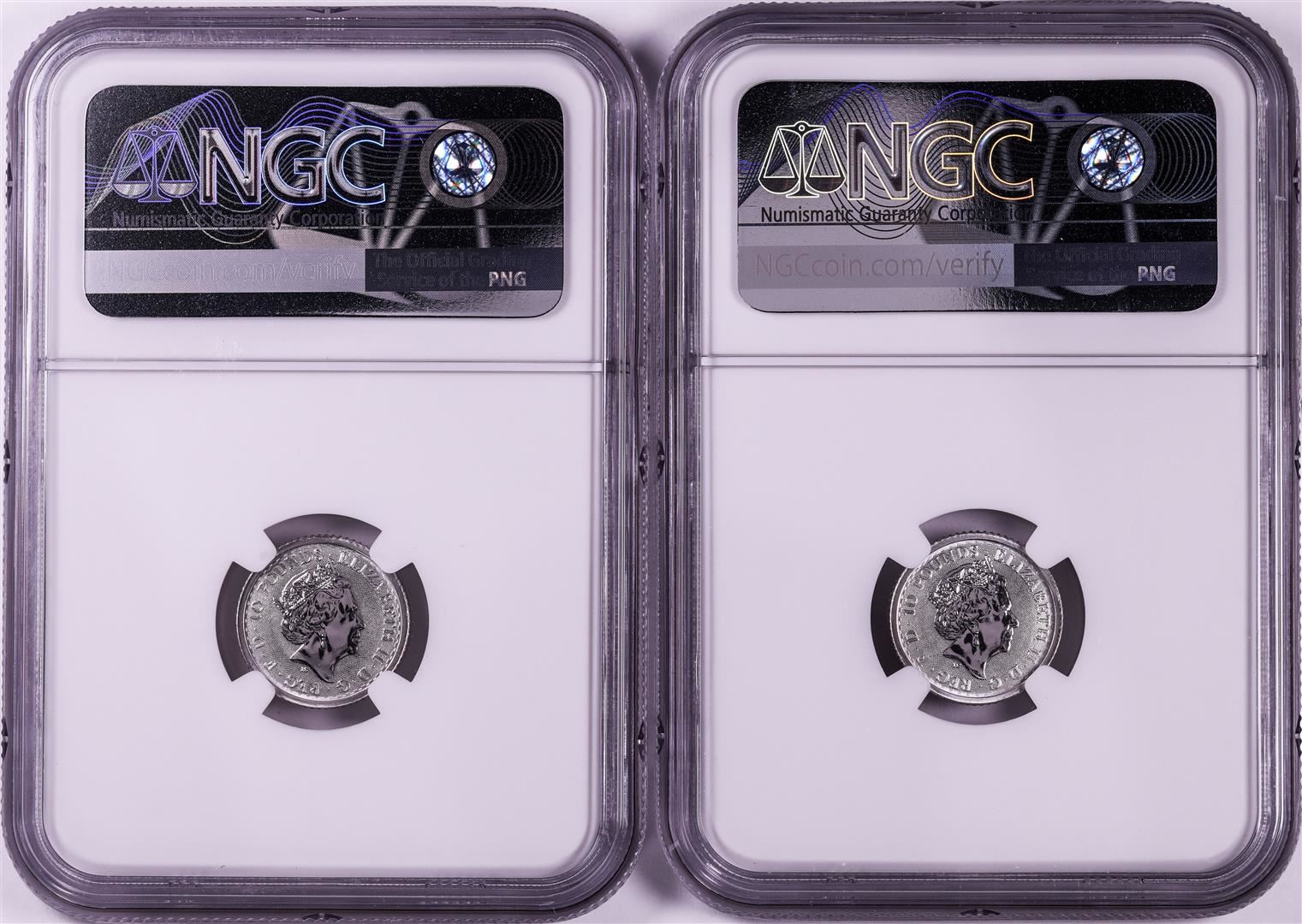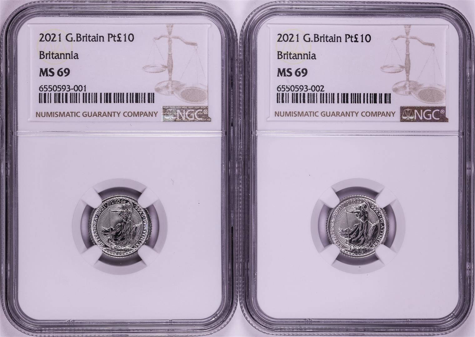 Lot of (2) 2021 Great Britain 10 Pounds Britannia 1/10oz Platinum Coins NGC MS69