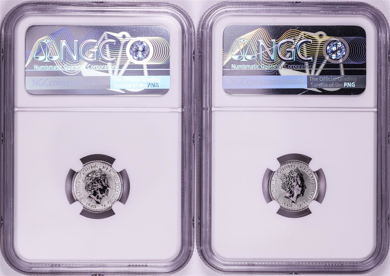Lot of (2) 2021 Great Britain 10 Pounds Britannia 1/10oz Platinum Coins NGC MS69