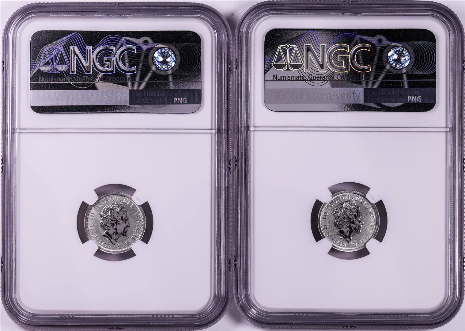 One Lot of (2) 2021 Great Britain 10 Pounds Britannia 1/10oz Platinum Coins NGC MS69. NGC Certified.