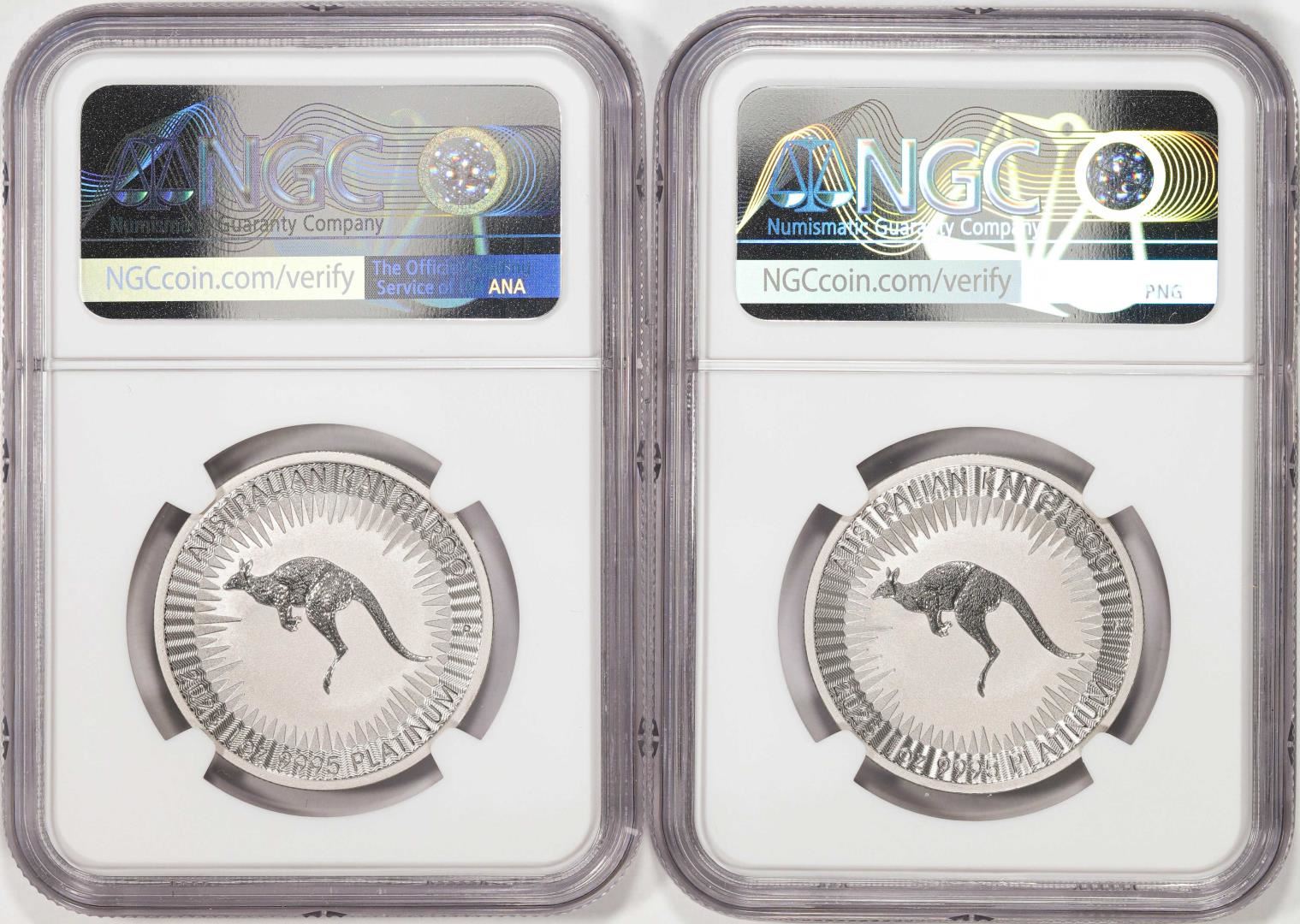One Lot of (2) 2023P Australia $100 Kangaroo 1oz Platinum Coins NGC MS70 First Releases. NGC Certified.