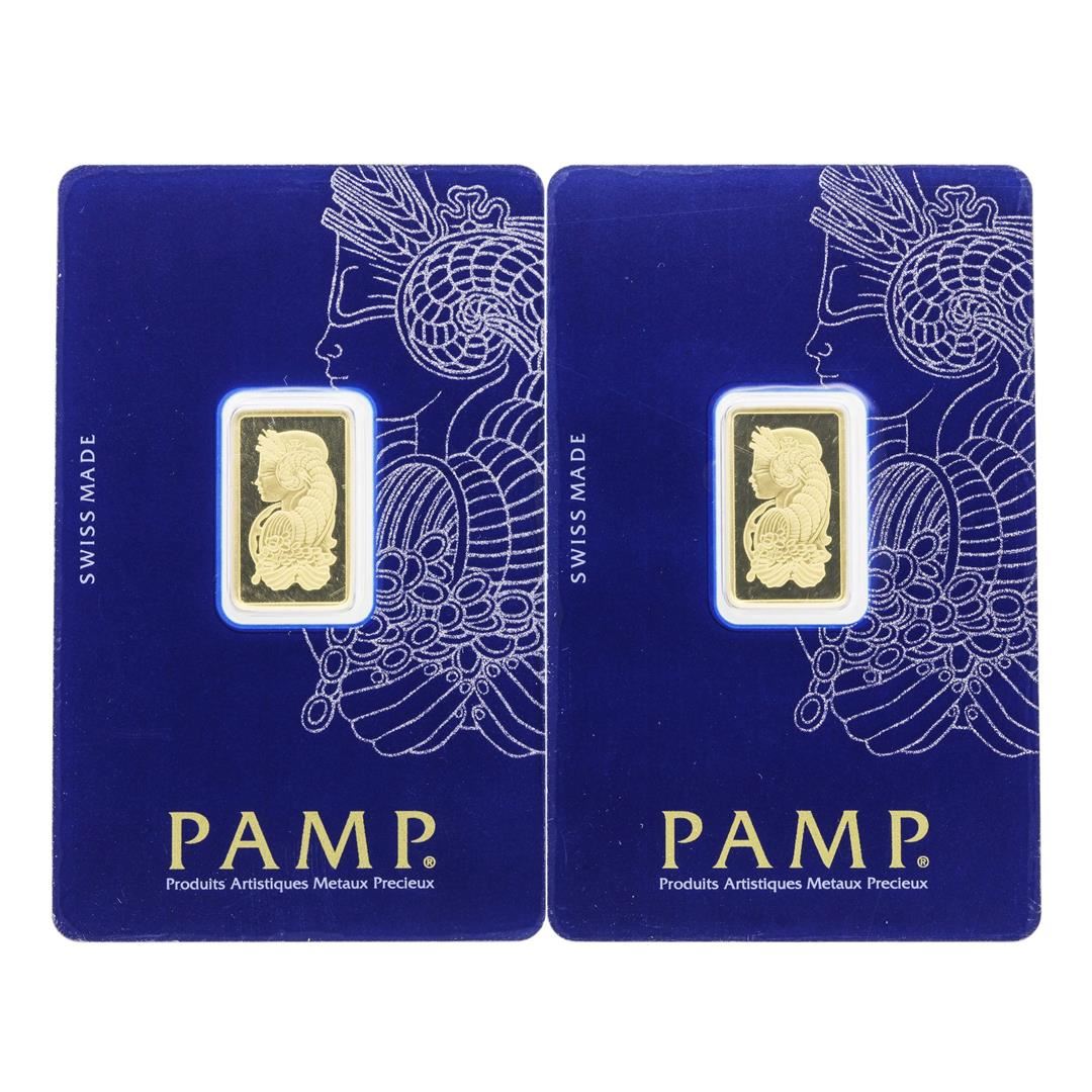 One Lot of (2) 5 gram .9999 PAMP Suisse Fine Gold Ingot Bars.
