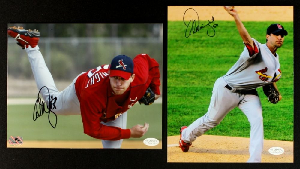 Hand-signed in blue felt-tip pen by Adam Wainwright (Cardinals). The autographs include official James Spence Authentication (JSA) hologram for authenticity purposes.