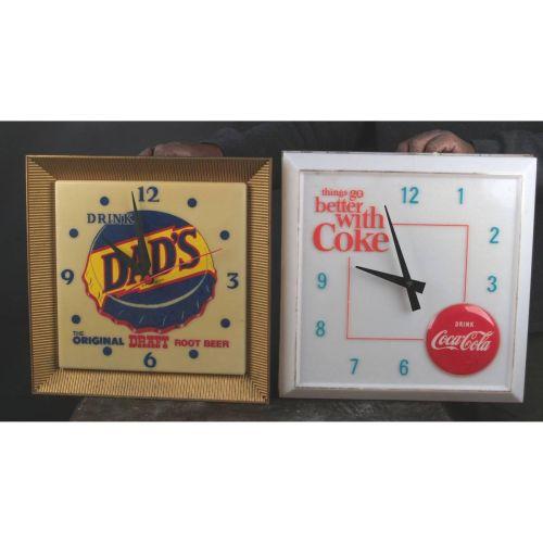 Lot of 2 Adv Clocks: Early Coca-Cola & Dad's Root Beer