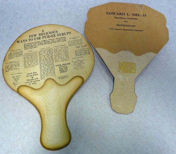 Pur-Ox Fan in better condition with no scuffs or tears. Edward Smead fan has some damage.